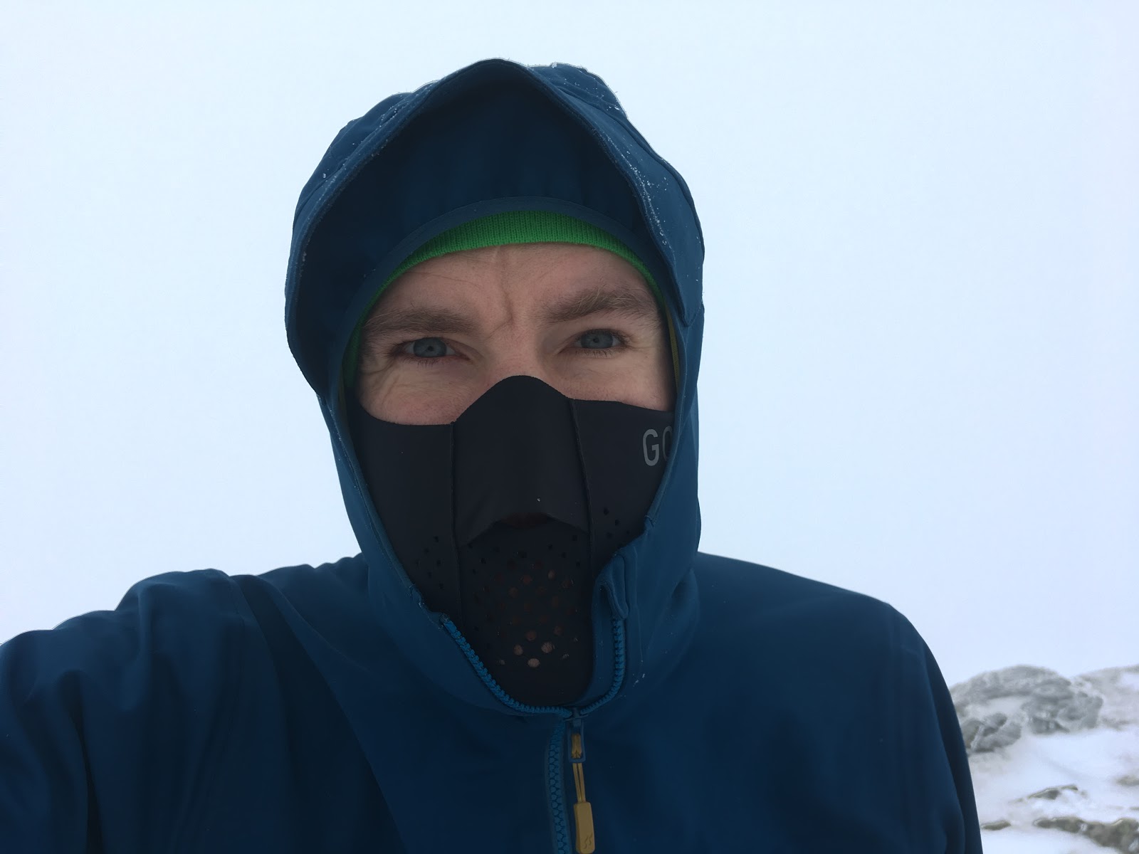 And into the wind on the descent, I had to deploy my new face mask – good testing conditions for next week – where I’ll be in the Arctic on expedition I figured!