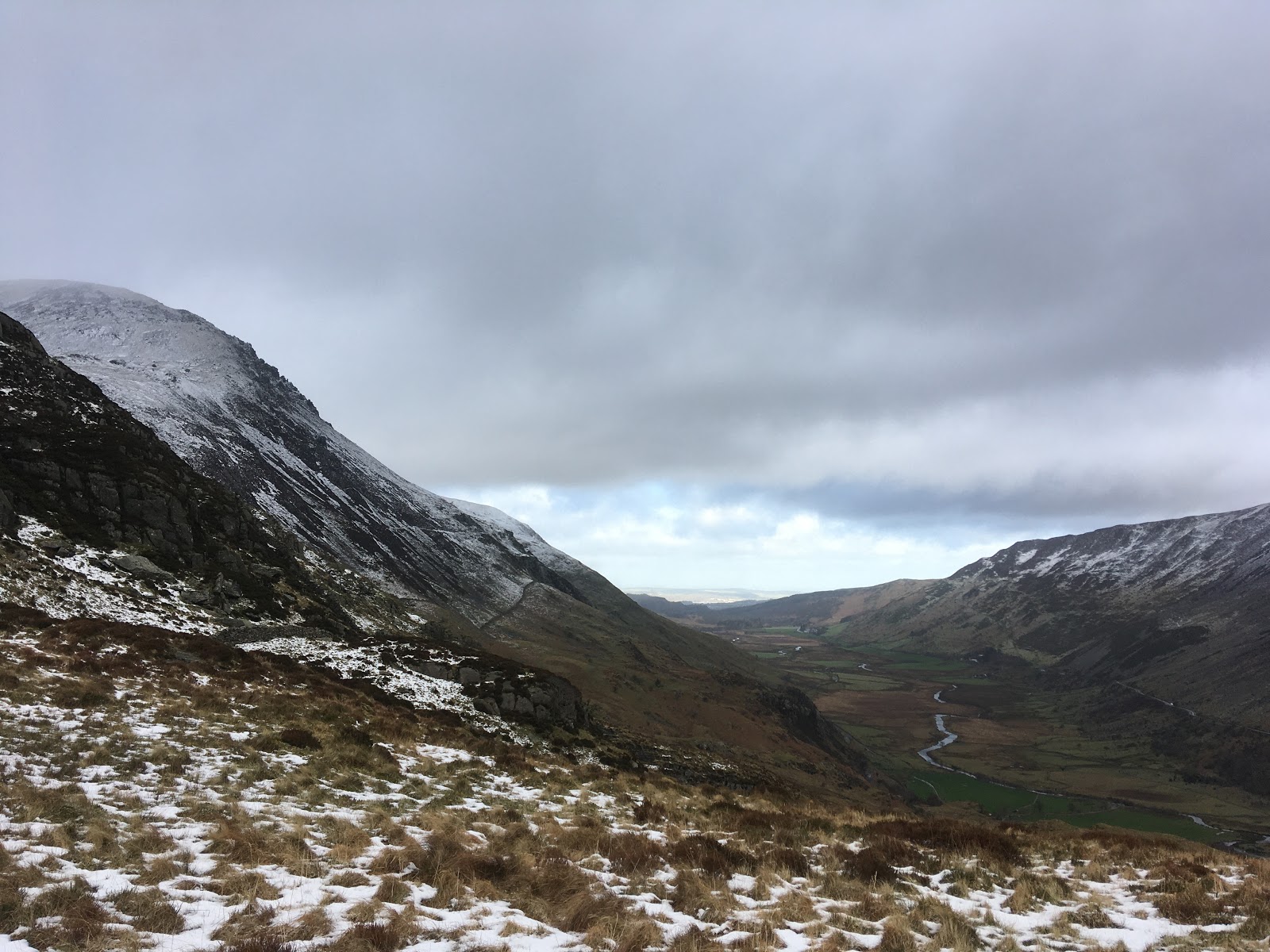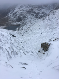 The cliffs below the summit of Y Garn were looking wintery, but not really white enough for climbing. I still chose the gully option as it was much more sheltered than walking up the ridgeline.