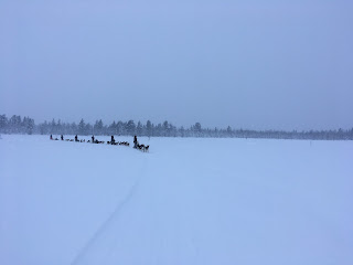 We really were lucky to see the Northern Lights last night. This morning, although dawning with a beautiful sunrise, was overcast and snowing before we’d started sledding.