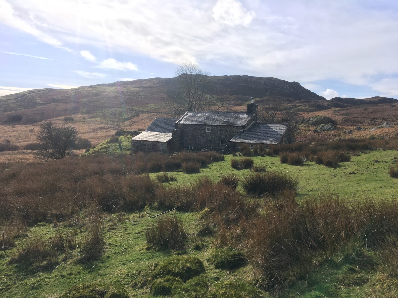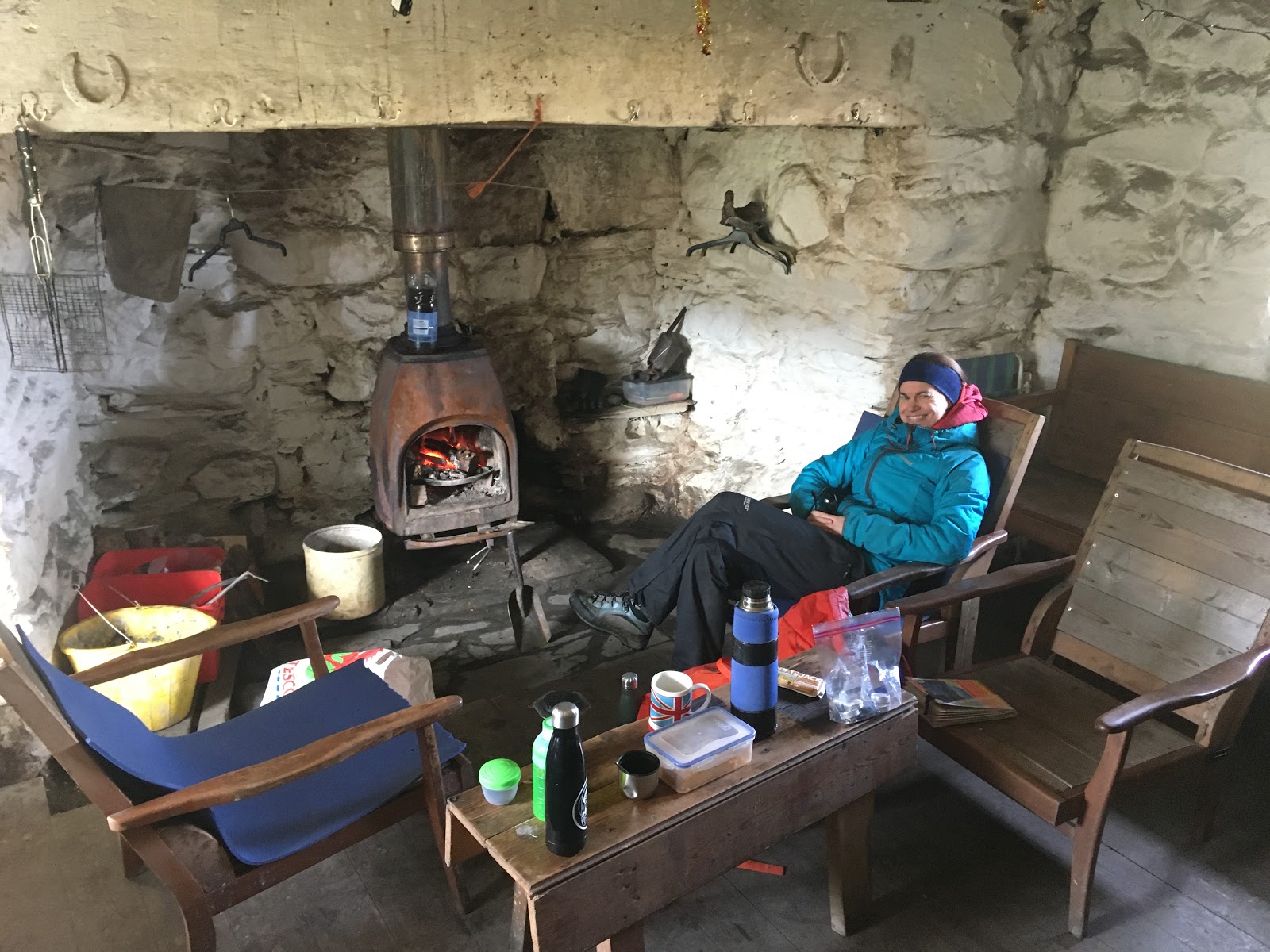 It was boggy terrain above the forest and old quarry that we passed through, but we found the Bothy as the sun came out. The sunlight actually felt warm on our faces, which was bliss.