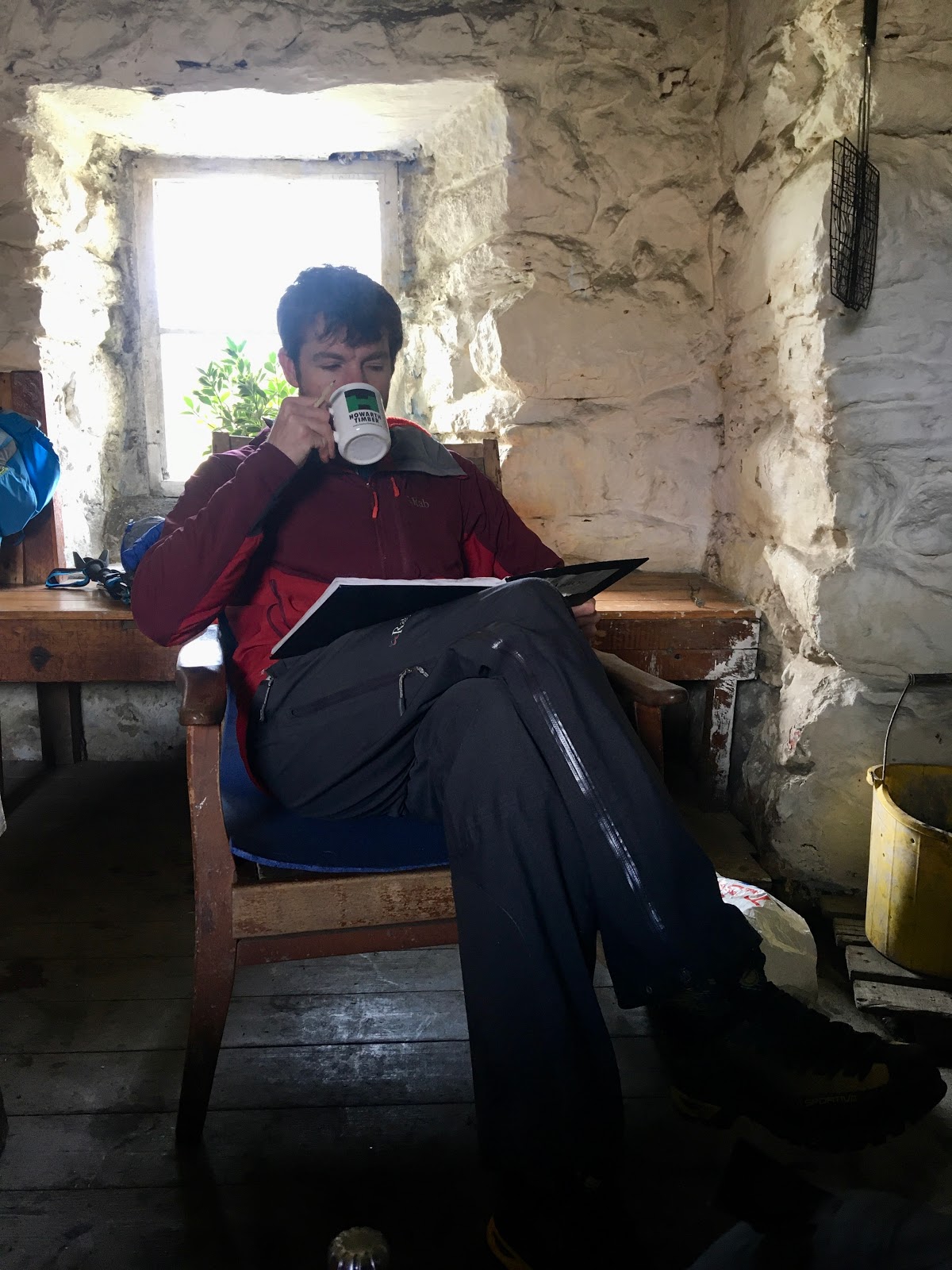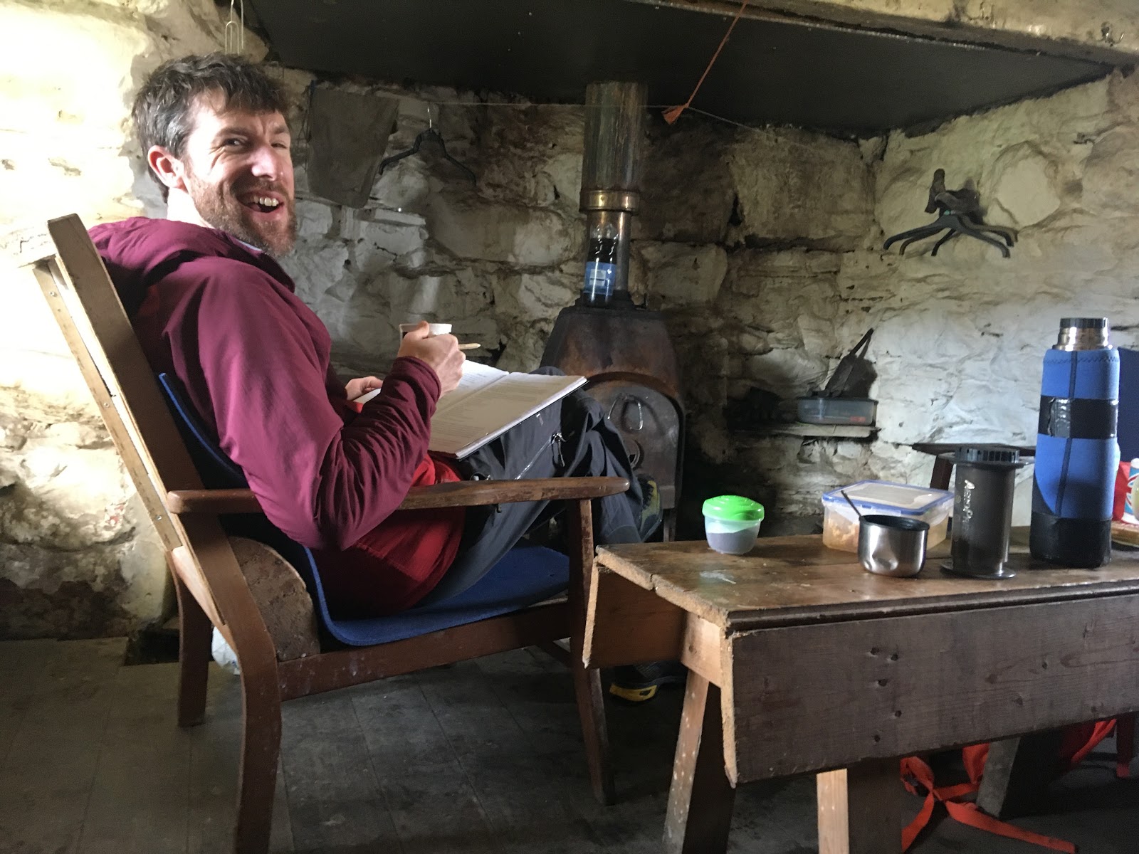There was no one around, so we sparked up the fire (having carried in a small sack of wood), and set about making a brew.