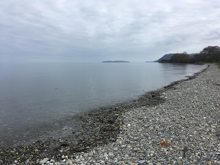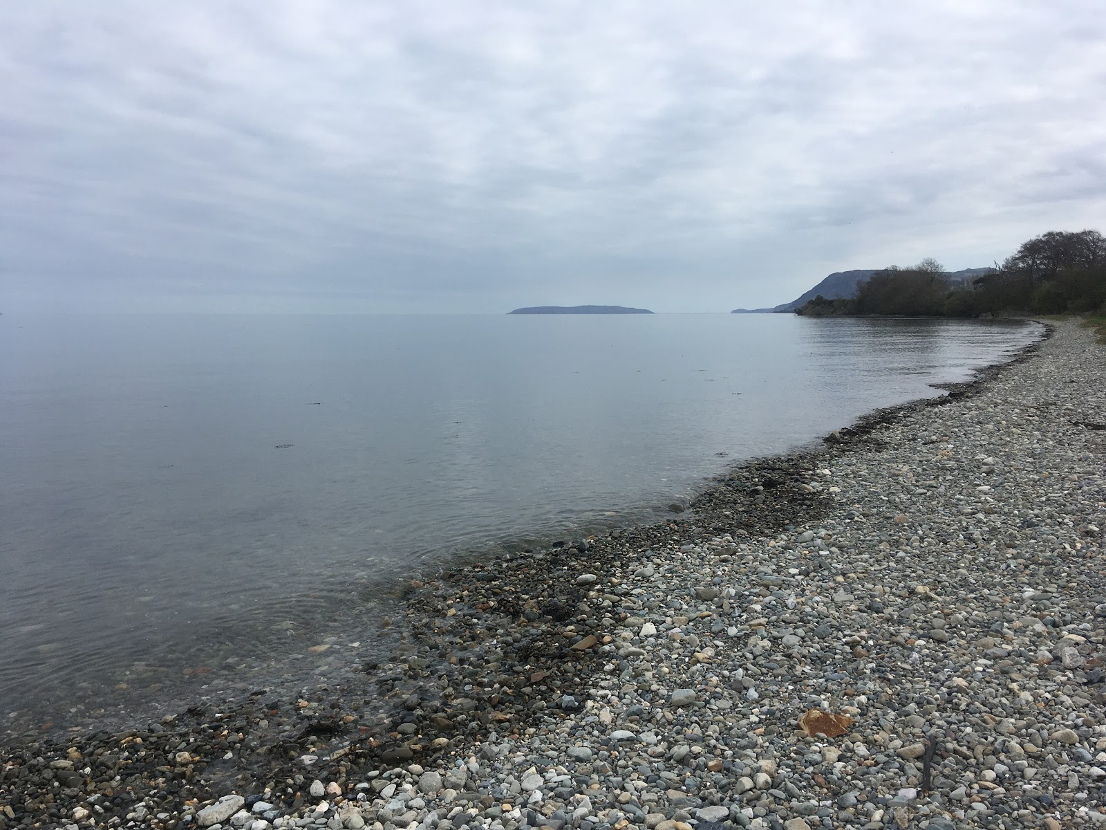 This time the tide was high and the water was perfectly calm. The only sound was a few birds and the lapping of the water. It was good for the soul. We could see the Great Orme, but Llandudno looked underwater.