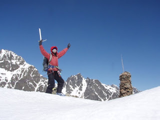 | Clare at the high point – ready for the reward of untracked slopes below |