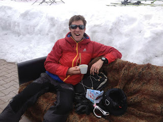 | No need to rough it! Mid-morning coffee break on the slopes |