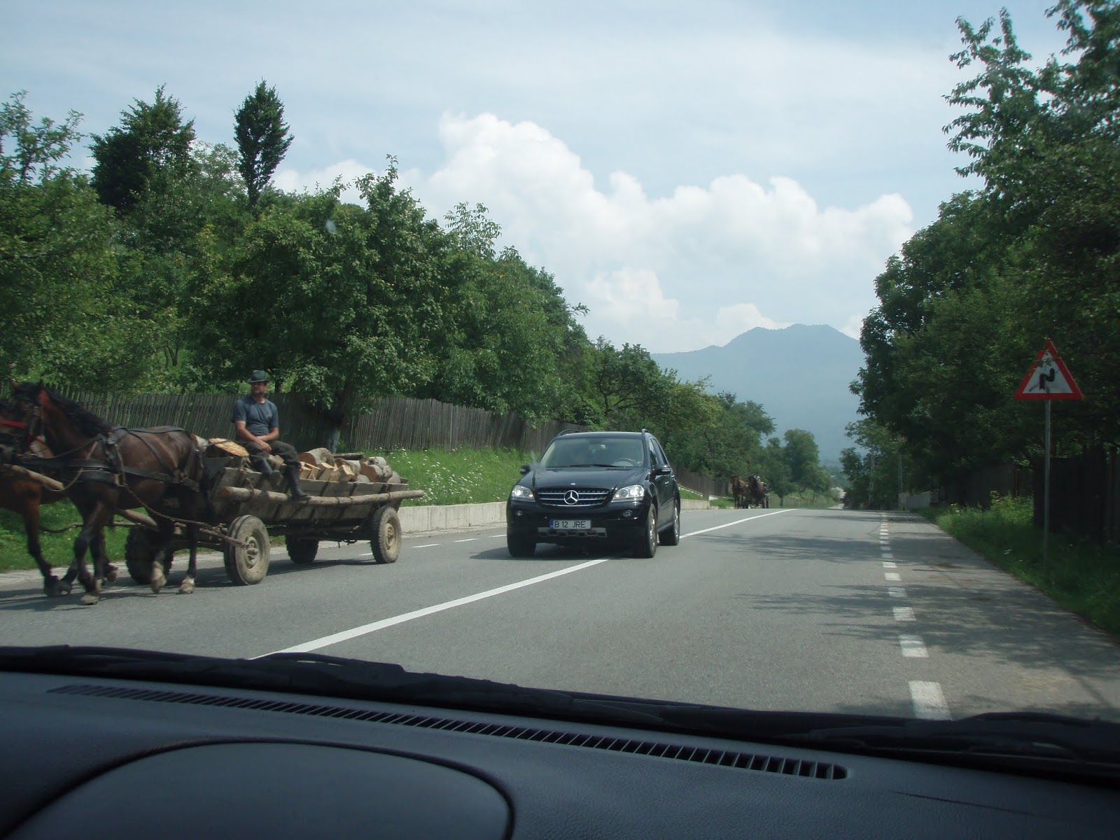 After several days of severe afternoon storms, the plentiful run-off, had swollen the Bistria River to its banks, with fast-flowing, murky brown, sediment filled water. The road that followed its course was a veritable patchwork of tarmac repairs. As with many of the roads in this area, there were frequently places where it was hard to say if any of the original road surfaces actually still remained. Driving required you to focus yourself into a sort of computer game-like state; where having reacted to swerve around one bump, you would suddenly throw the wheel in the opposite direction to avoid the next, in the way that you’d perhaps avoid ‘losing a life’ in a game of Mario-Cart. If that wasn’t enough to concentrate on, every now and then a horse-drawn cart, loaded to a precarious height, would appear around the bend, invariably on the wrong side of the road.