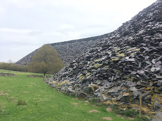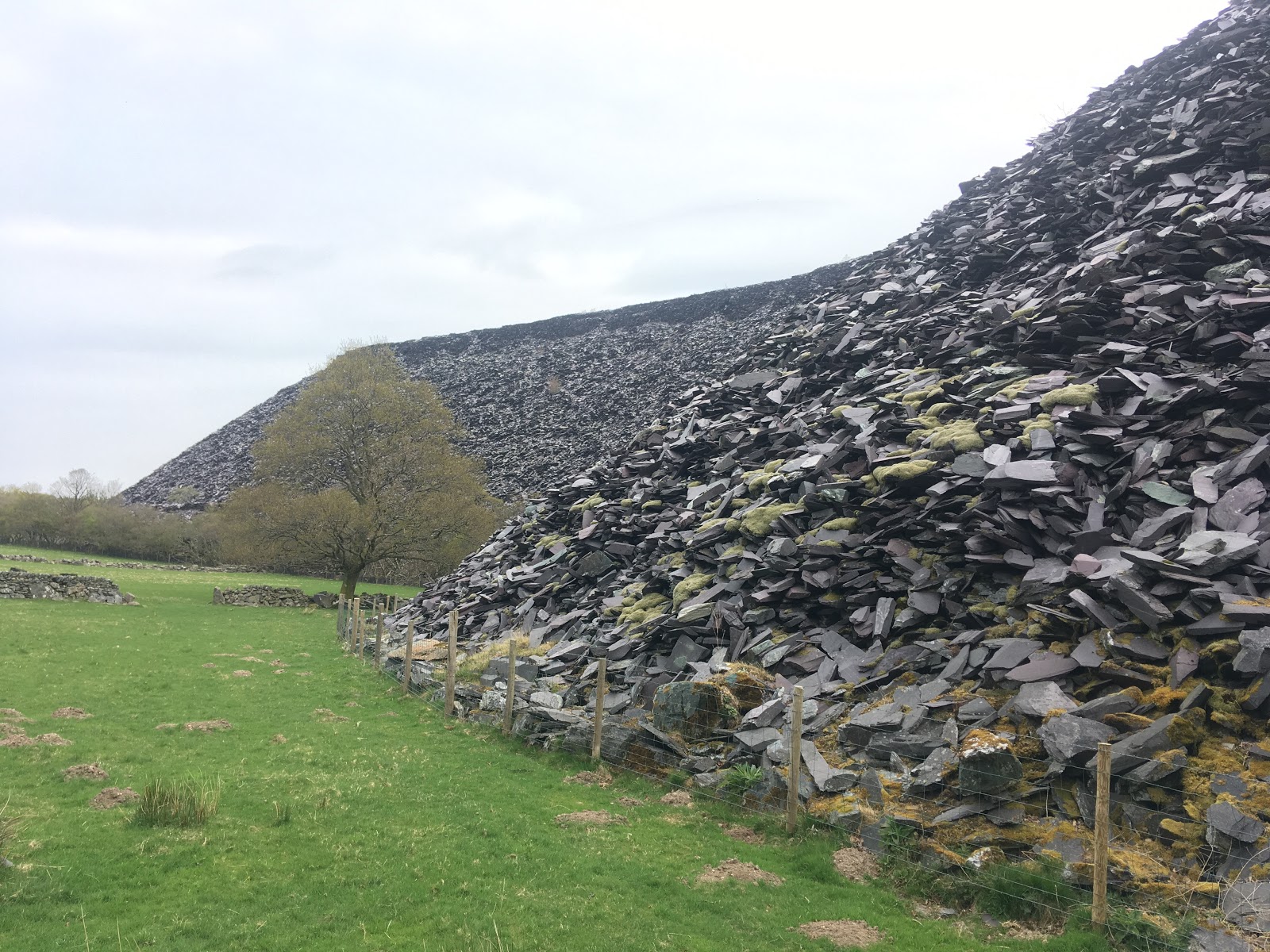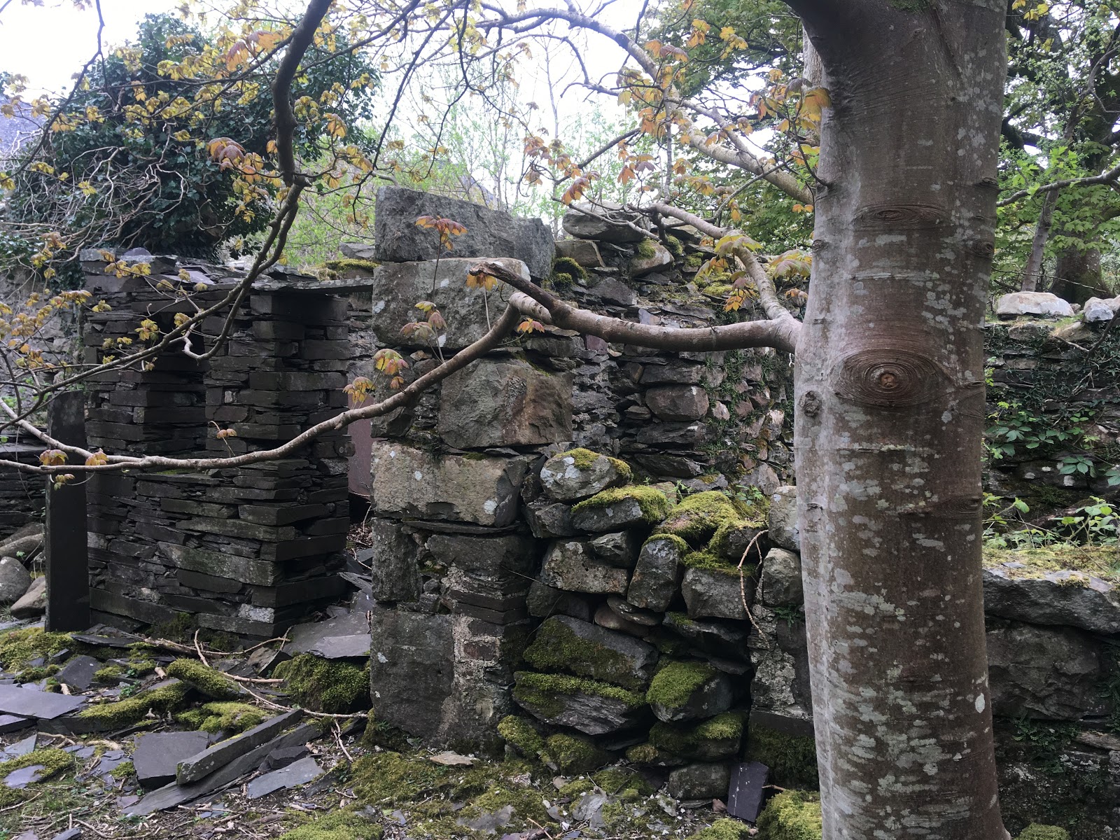 After weaving through some lesser travelled footpaths, we came across a landowner, clearing a ditch. He was very friendly and showed us the best way to continue after a nice chat about the area. Apparently there is a church and village under the slate heaps here! The got buried by the advancing slate tips. We later came across a few ruins.