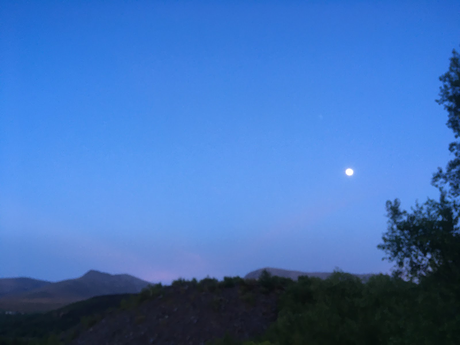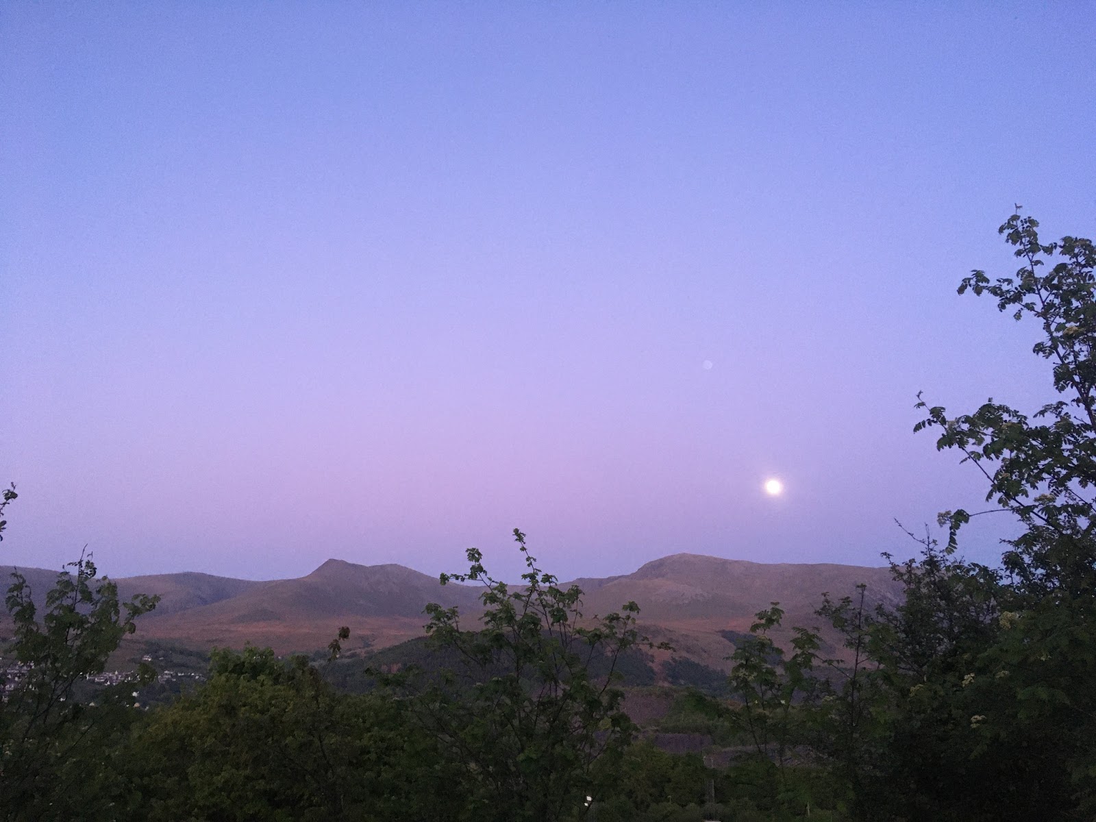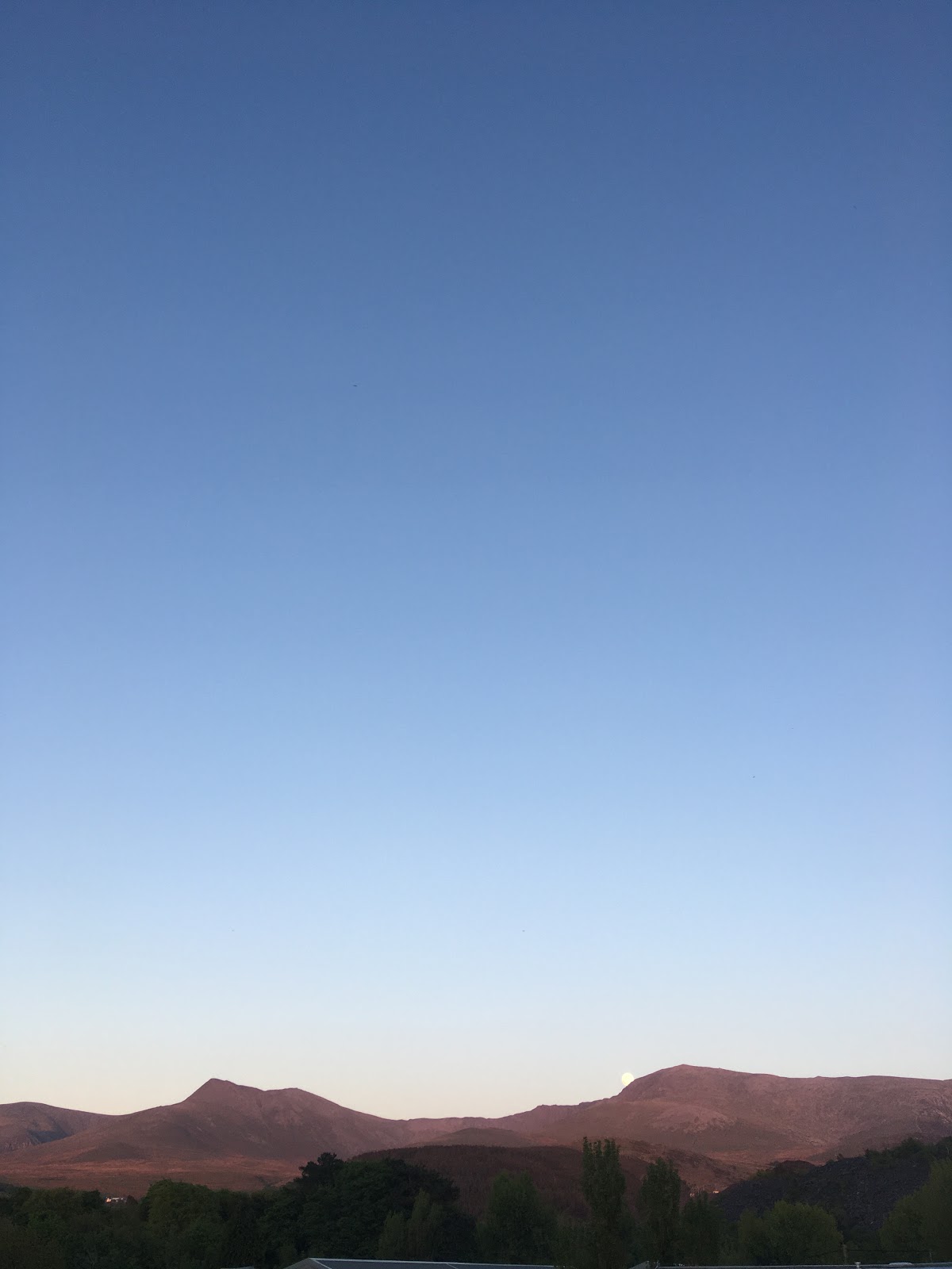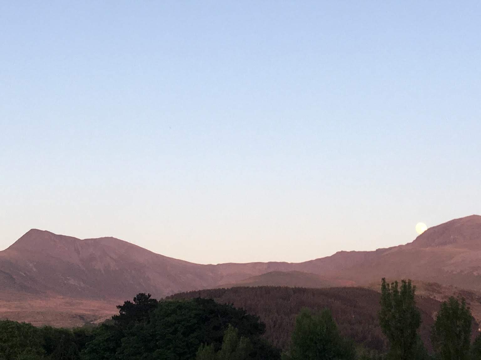This evening, after a tip-off from our neighbour, we set out to explore some local footpaths to see where they went and discovered a beautiful old oak woodland, filled with bluebell and apple blossom. As is usually the case, the photo below doesn’t quite do the moment justice, but just before we got to the woods, the full moon rose over the mountains (it’s in the right-hand side of the pic, if you look closely!). We stopped and watched for a while before moving on.