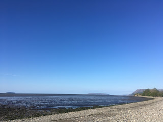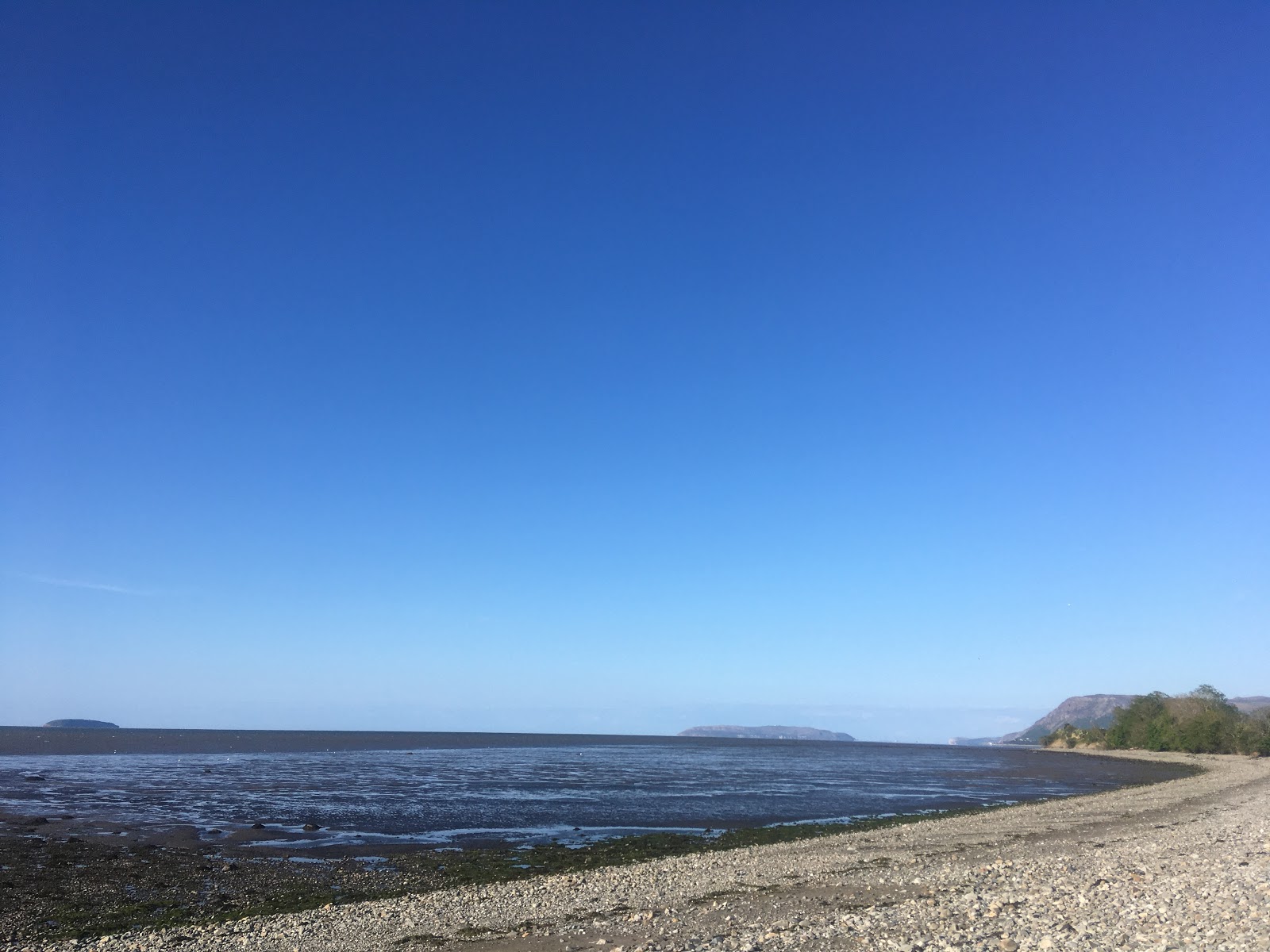 Arctic air was blowing across the bay, so we found a sunshine facing bank to get down behind and soaked up the heat in the lee of the wind. The regulation in Wales changed today and we’re now ‘officially’ allowed to make brief stops like this while out ‘exercising’. We made the most of the allowance and chatted away about our days while watching the oystercatchers and shell ducks.