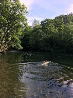 Then, later in the day, once the screens were logged off, the weather really came good for us and we went for a very short bike ride to find this lovely private swimming pool. Can’t believe we’ve never stopped here before!