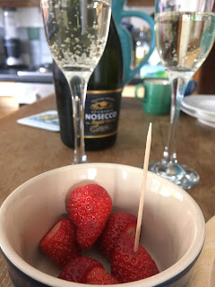 Clare’s Birthday! And a good excuse to start the day off with croissants, strawberries and a nice crisp glass of ‘Nosecco’!