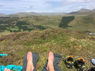 Firstly, after some planning with the map and a pair of binoculars, we found one of Wales’ best secret picnic spots! It was hot work getting to it, but we were rewarded with a sheltered sun trap with the perfectly angled rock for sitting up against. Lunch was an extended affair as it was so comfortable!