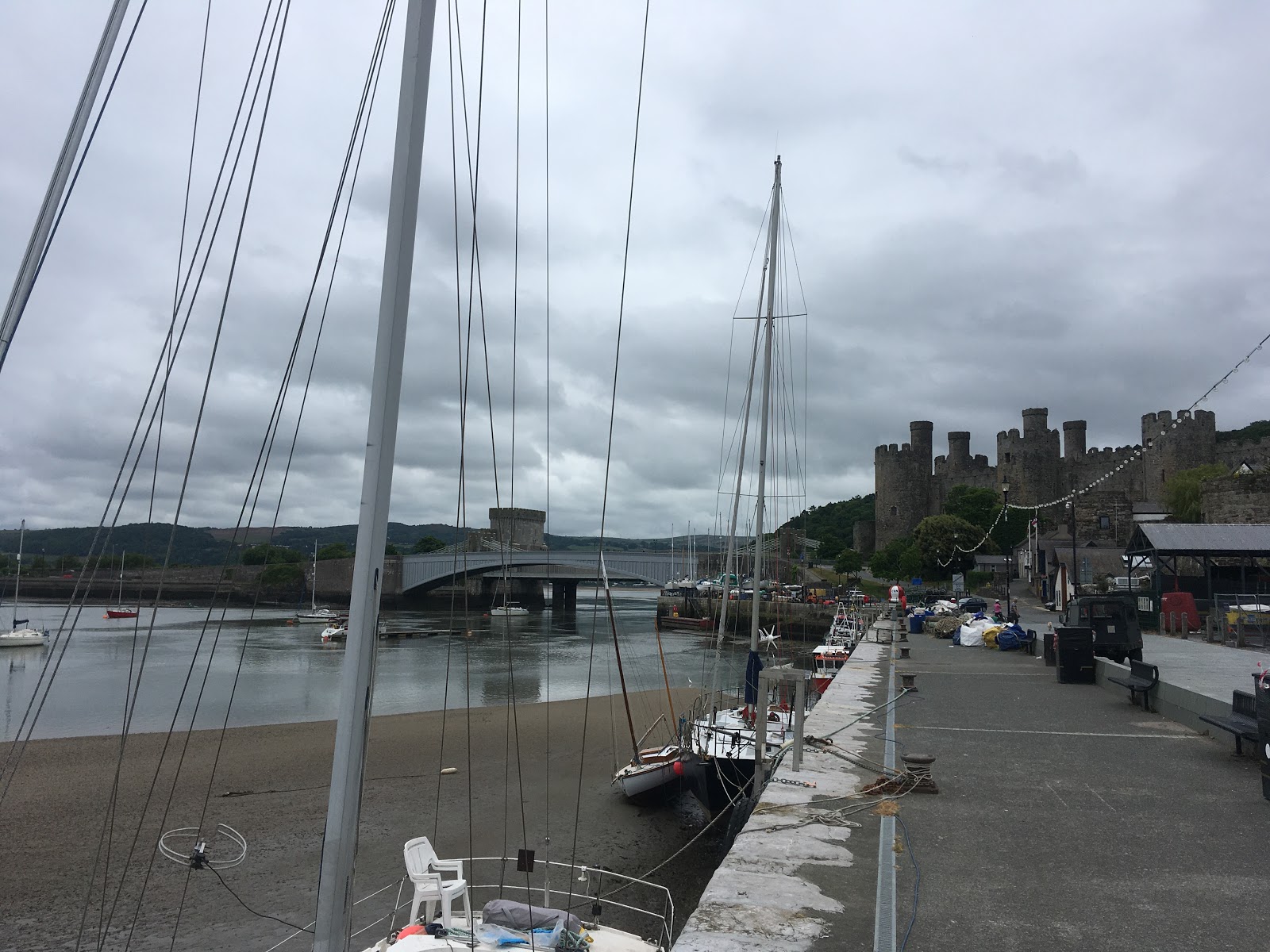 What started out as an ambitious plan, turned into a monster ride during the day. Light winds, overcast skies and even touch of drizzle actually gave some perfect biking conditions for a long ride. Leaving The Cottage behind, we crept slowly up the A5, past Ogwen Cottage and along to Capel Curig. From here it was a pleasant downhill to Betws-y-Coed and into the Conwy Valley. A quick stop for Pain-au-Choc in Trefriw gave us the boost we needed to successfully complete a bit of navigating around the lanes near Rowen, before riding in through the castle gates at Conwy.