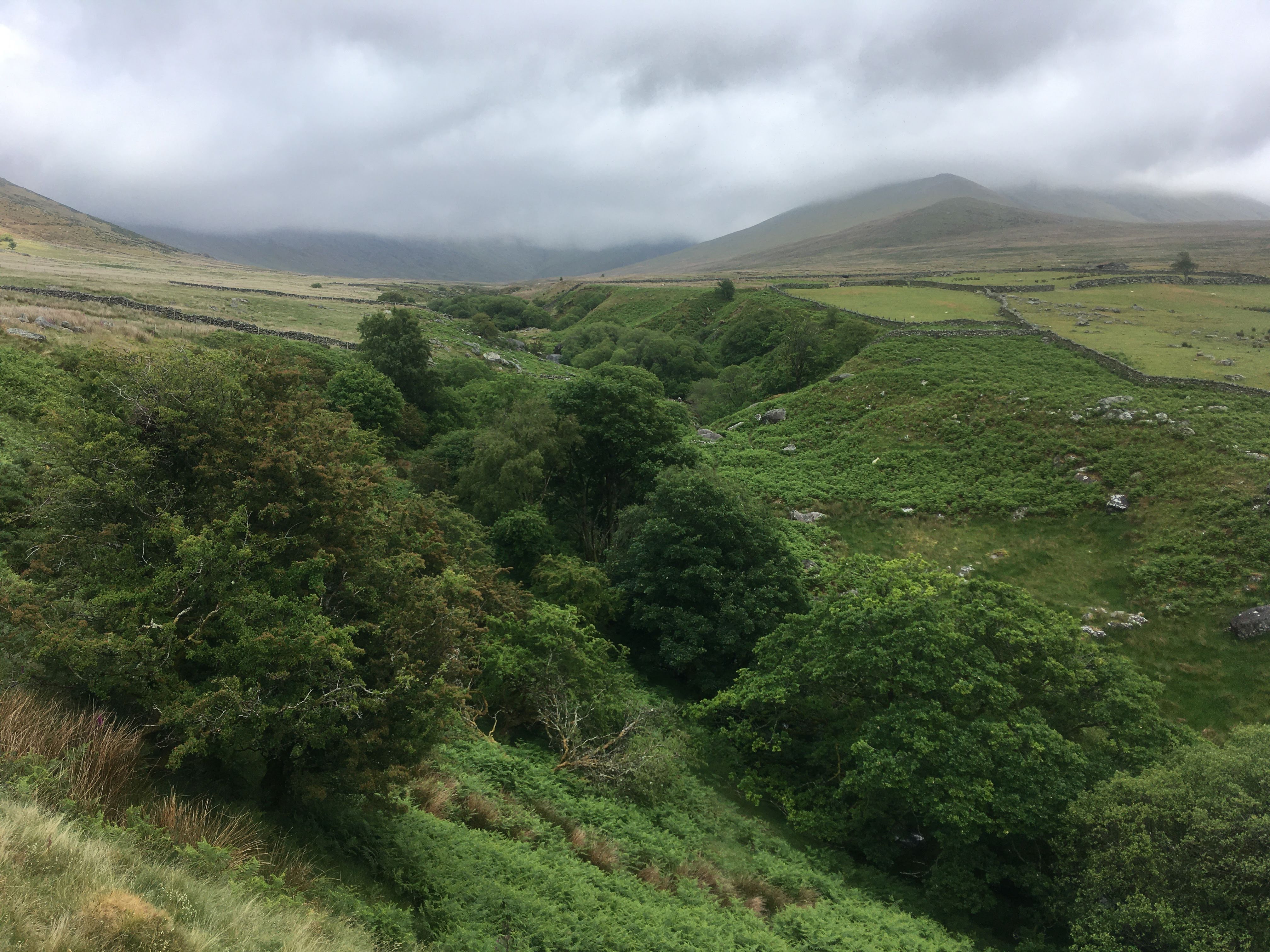 It was a bit of a damp and dark Sunday, compared to what we’ve come to expect around here. A nice slow start, with some strawberry pancakes made for a good beginning, without the need to rush out anywhere. A local stroll in the afternoon took us up to the hillside above the Afon Caseag on the edge of the Carneddau.