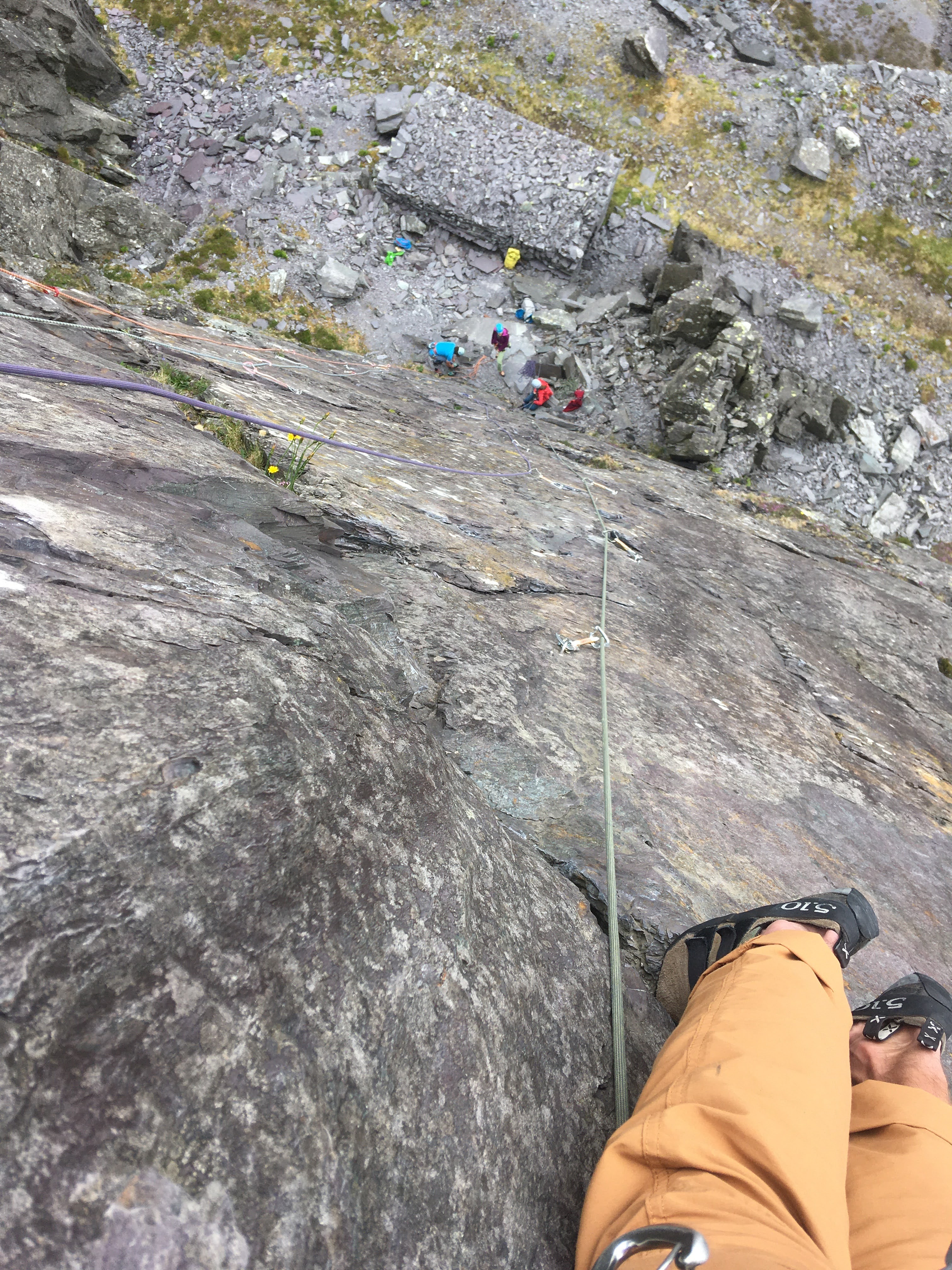 For the first time in many months, there was a glimmer of normality in the air. It was a wonderfully warm day, so we decided to head over to the quarry for pretty much the first time this year. We are still feeling very lucky to have so much outdoor recreational space around us in our local area. Funnily enough, the relatively quiet area of the quarry where we chose to climb, a few other local friends had had the same idea. We were easily all able to ‘keep away’ for each other, but stay close enough to enjoy some welcome chat and share each other news. And as no one else in the country can travel, we knew all the climbers are they were all locals!