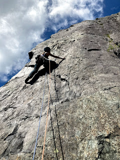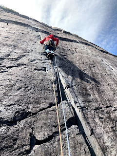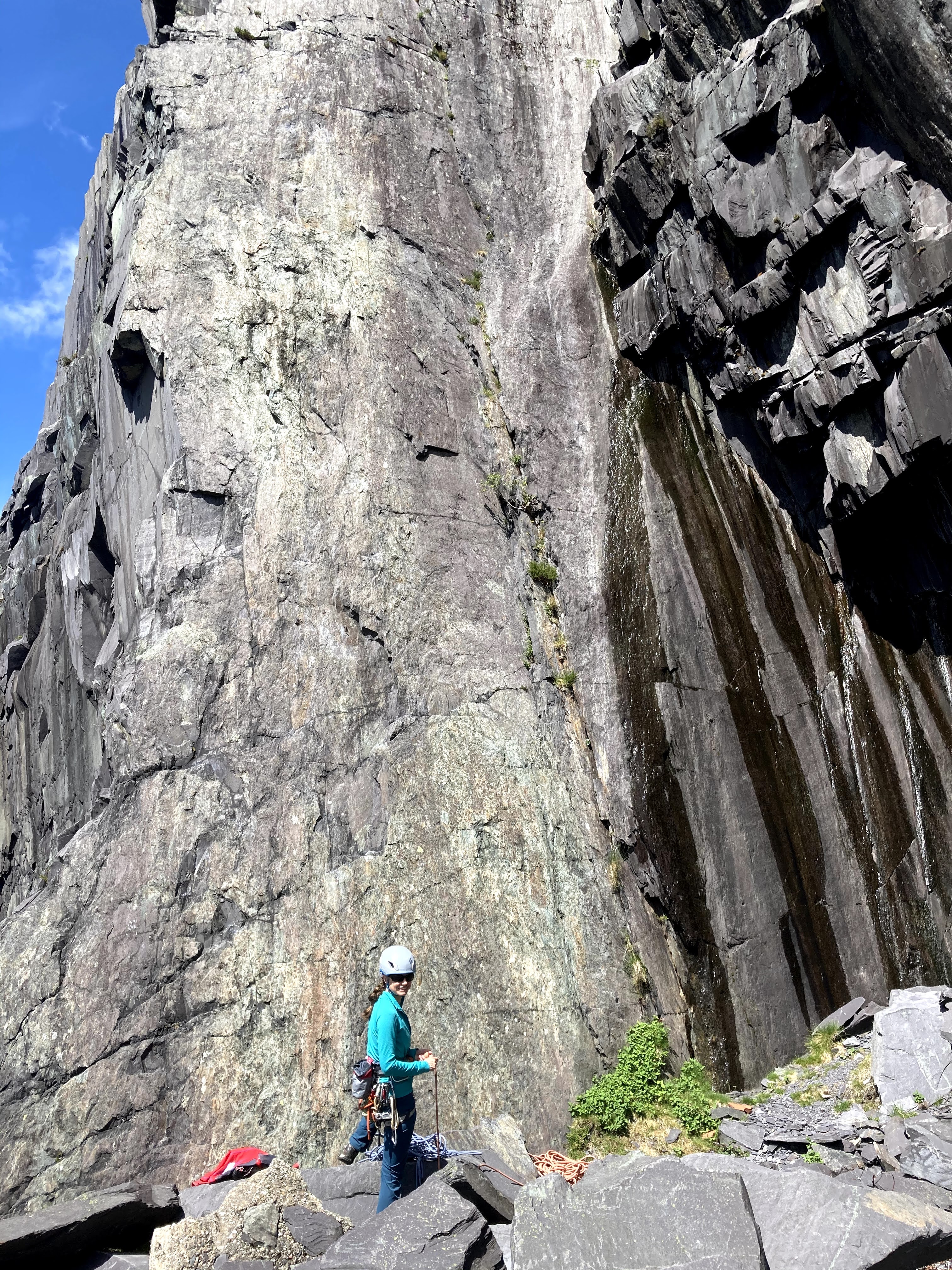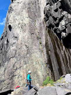 It was great to be back on the rock, but the vibe in the quarry had changed since last time. Admididly, we were closer to the main track that leads through it, but we were both really surprised at how busy and noisy it was. Bikers, dog walkers, groups and climbers all passed by and even though they we 50m away the sound seemed to really travel. Afterwards, we wondered if it was because we are never really off together on a Saturday or if everyone else has just had enough of lockdown!