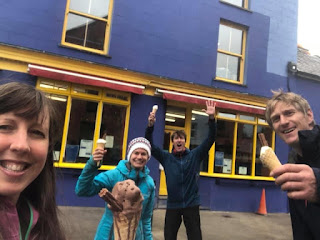 In the village, there was great excitement as Rachel was opening her Ice Cream Shop today. It was clearly big news as there was actually a queue on the street (to be fair, there’s not much open in Llanberis at the moment). We met our friends, Mat and Em there then walked back to their garden for a cuppa (much more useful after getting out of a very cold lake!).