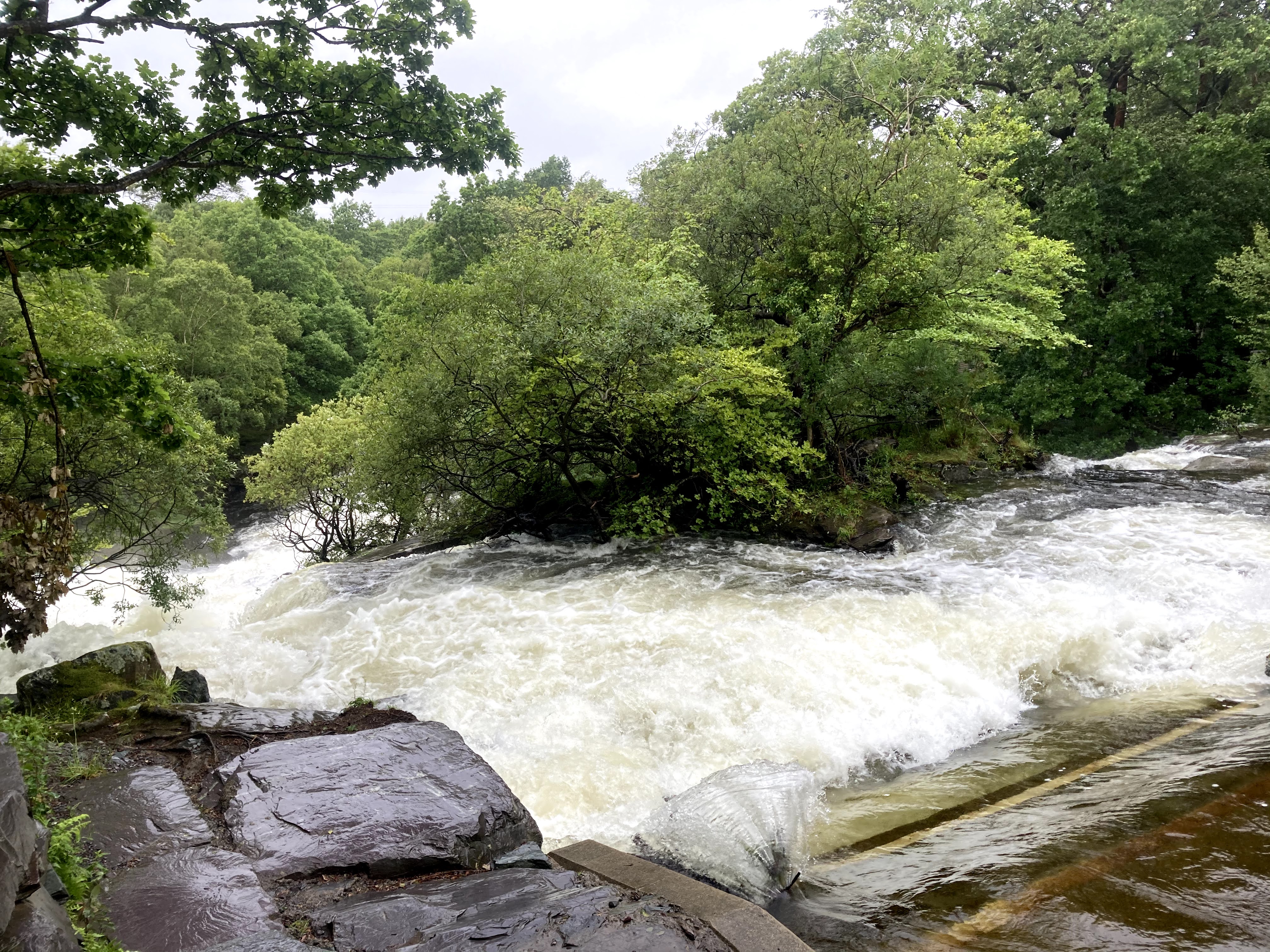 The weekend passed under heavy skies. Luckily, Friday was an online day so I was able to do my speech day duties online, from the warmth of the study while the rain hammered down. I’m not sure the usual marquee event would have survived. By Saturday 73mm was in the rain gauge here. Naturally, we went waterfall spotting in the morning and to briefly check the river. It was too high for me to want to get in (650 on the gauge).