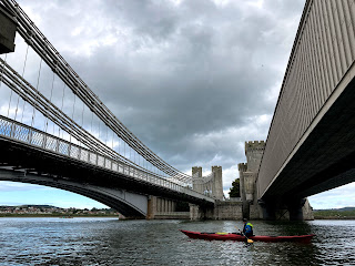 The tides were looking to be about right for an exploration up the Conwy Estuary and having spent a pretty intensive day planning august’s adventures we were keen to get out and make the most of the bright weather. The only snag was the wind. Would it be sheltered enough? We decided to go and find out. At the Beacons, at the mouth of the river, we were exposed to the wind and the tide was racing inward at a terrific rate. As the river narrowed towards the bridges, the wind would ease, but the speed of flow would increase. It was going to be an exciting start!