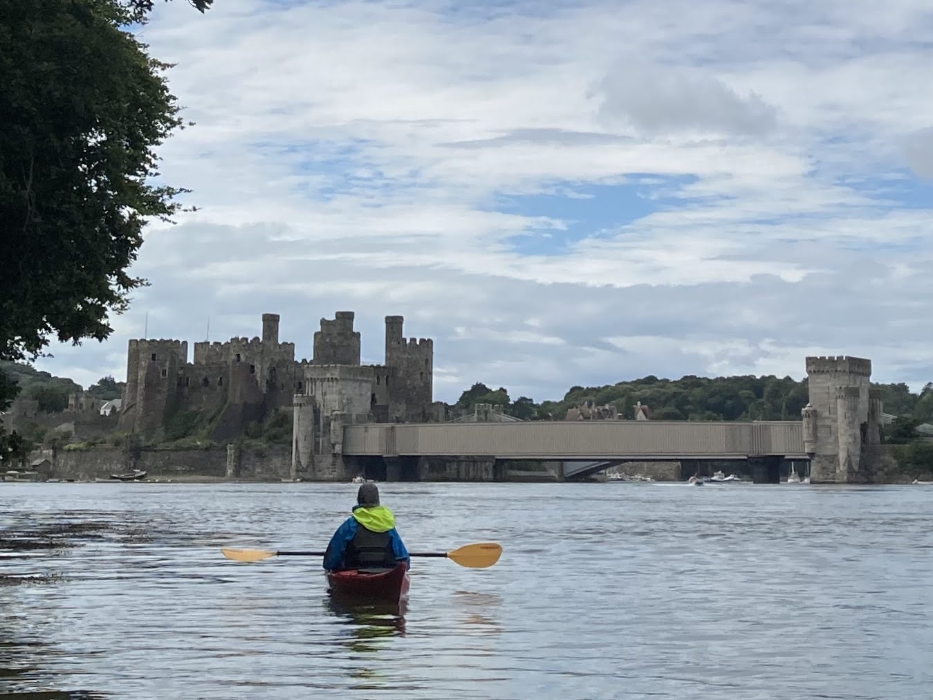 Still, we made good progress on the tide and pushed up and around the corner, out of sight of the town. The further we went, the more peaceful things became. That was until we lost the shelter of the high banks. Further up into the Conwy valley, the wind was hitting us face on, accompanied by a shower of rain. Rather than battle into the wind, we used the wind and eddies, to gentle creep back towards the Castle in the calmer waters.