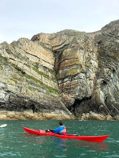 The cliffs are made of a fantastic rock that is all contourted and twisted into incredible patterns. It was a geology lesson from our boats.