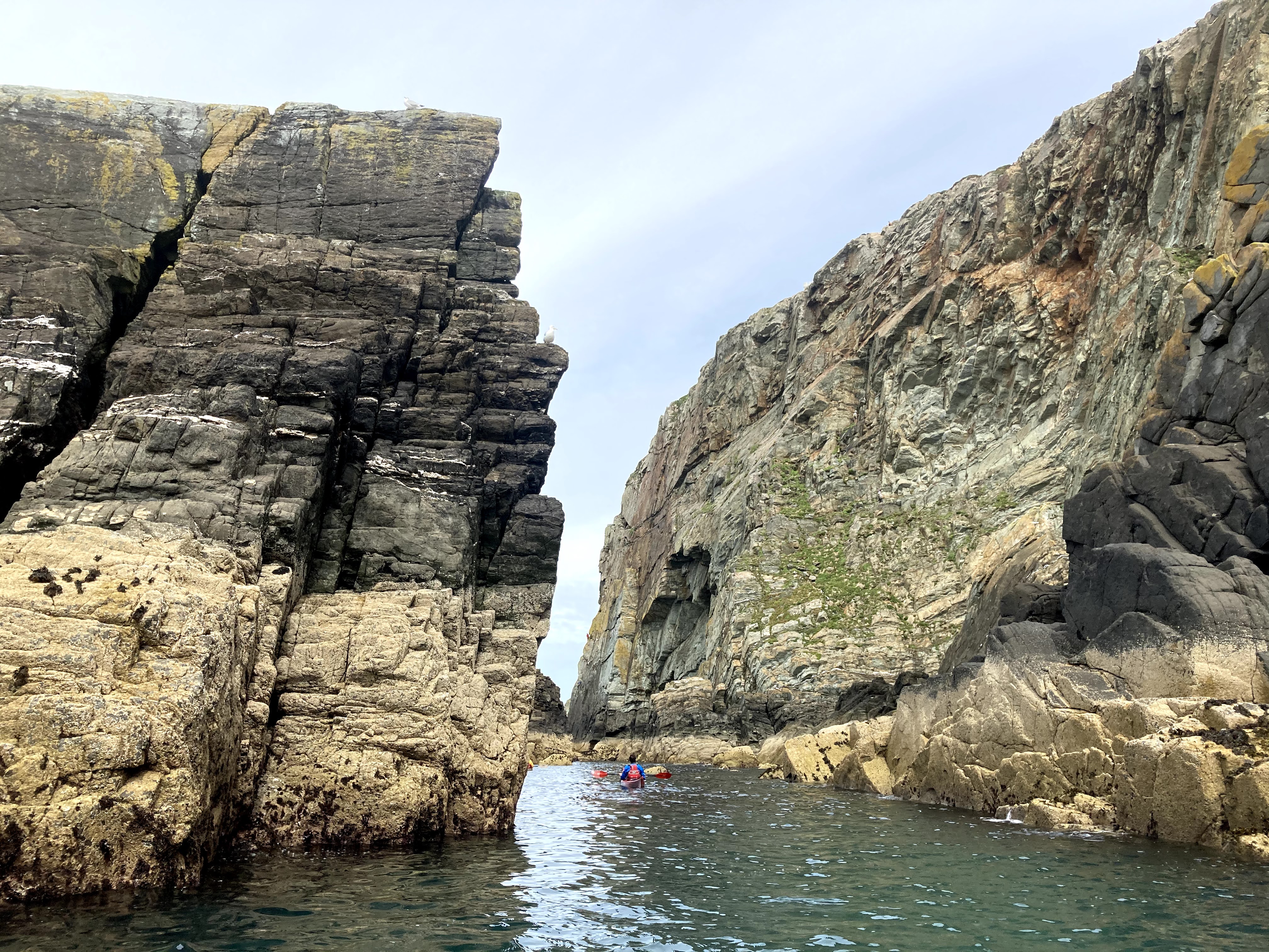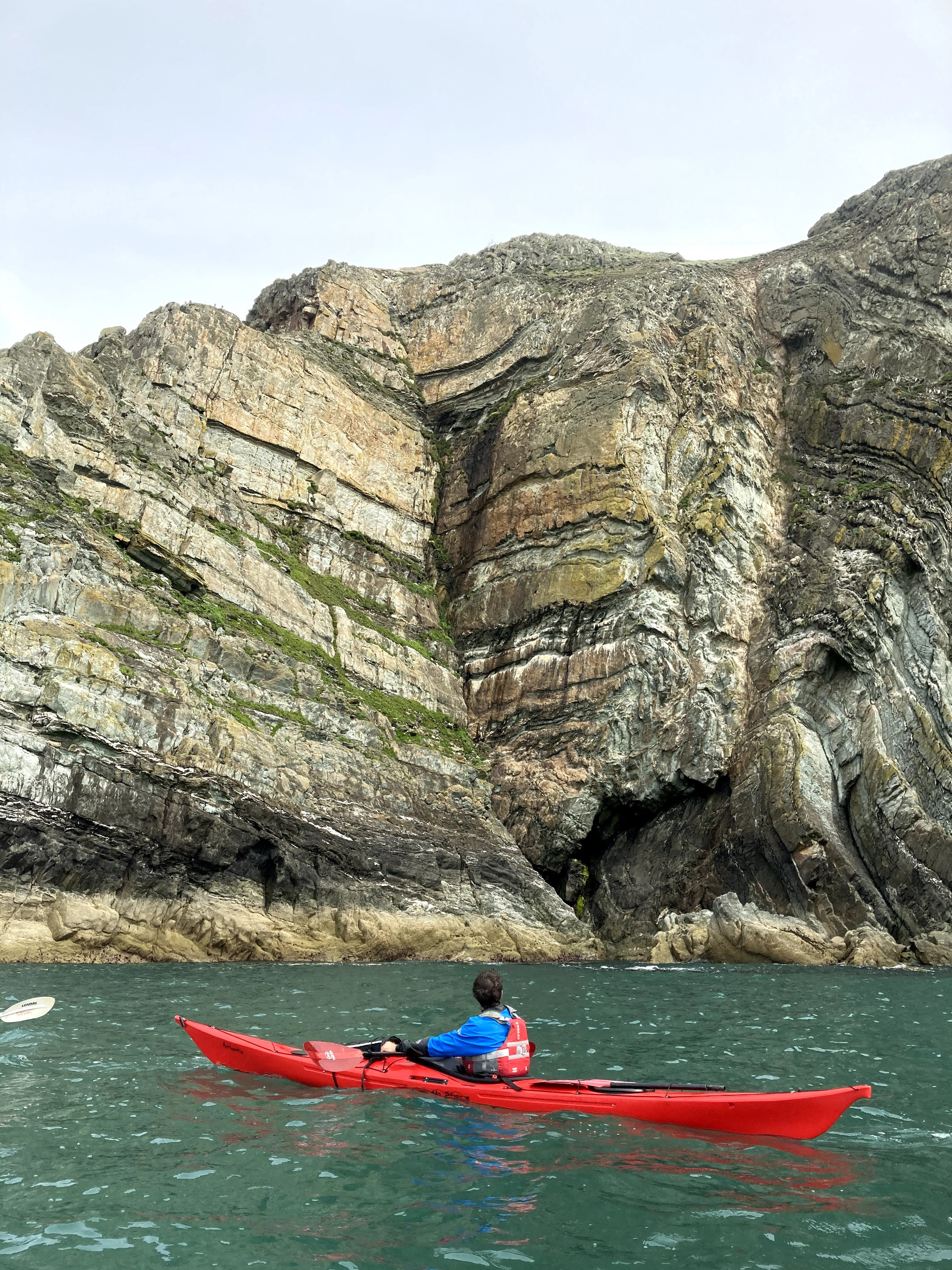 We were dwarfed by the size of the cliffs. One of the reasons why this is quite a serious trip is that apart from the strong tides and overalls, once you’ve started, there are not many places to get out until the end!