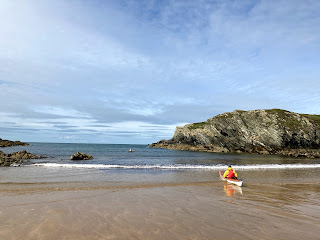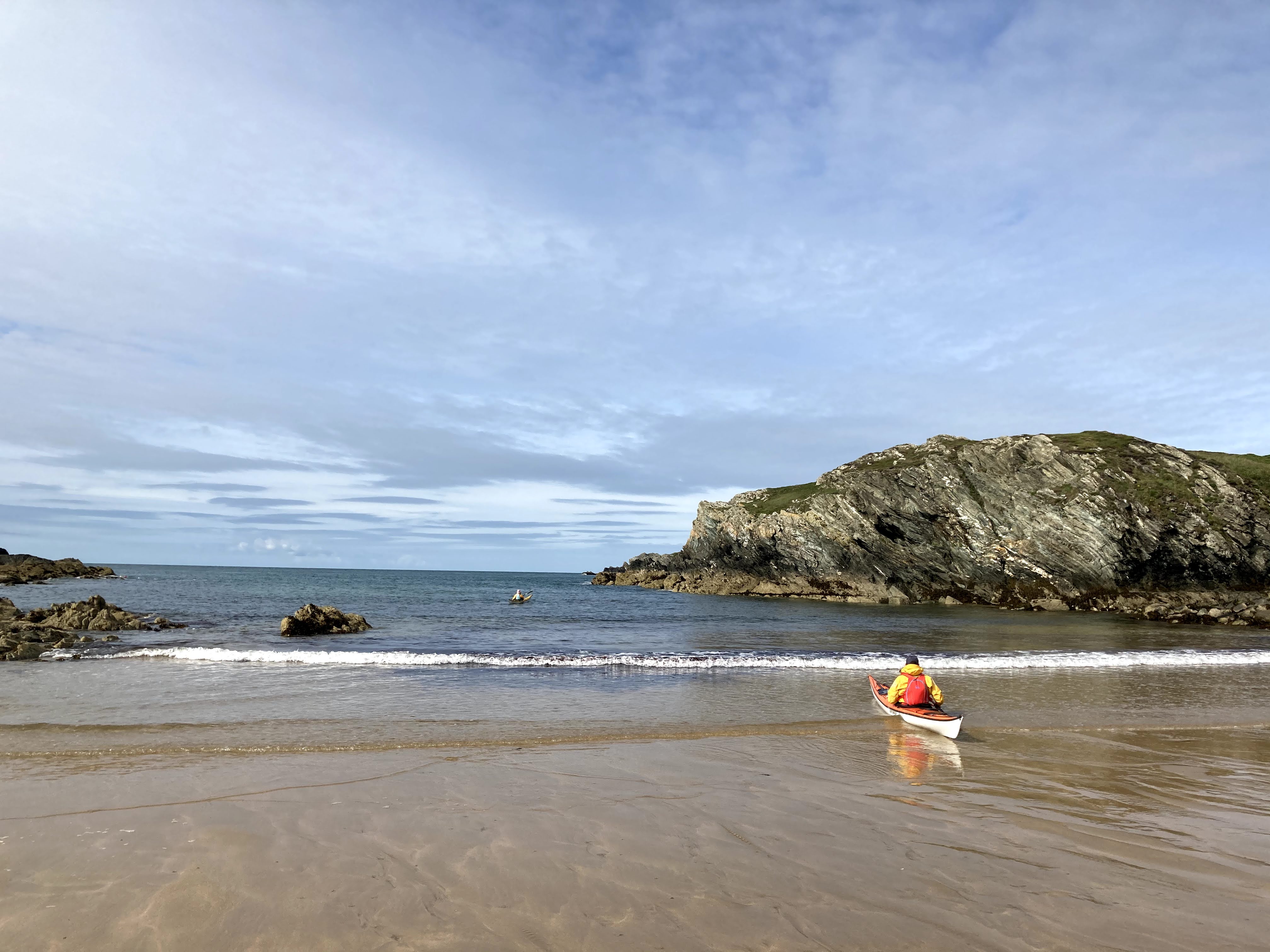 At 08:30 we were over on Holy Island, Anglesey, launching our kayaks at Porth Daffach. There was a light wind and a little swell, but otherwise, conditions were looking good.