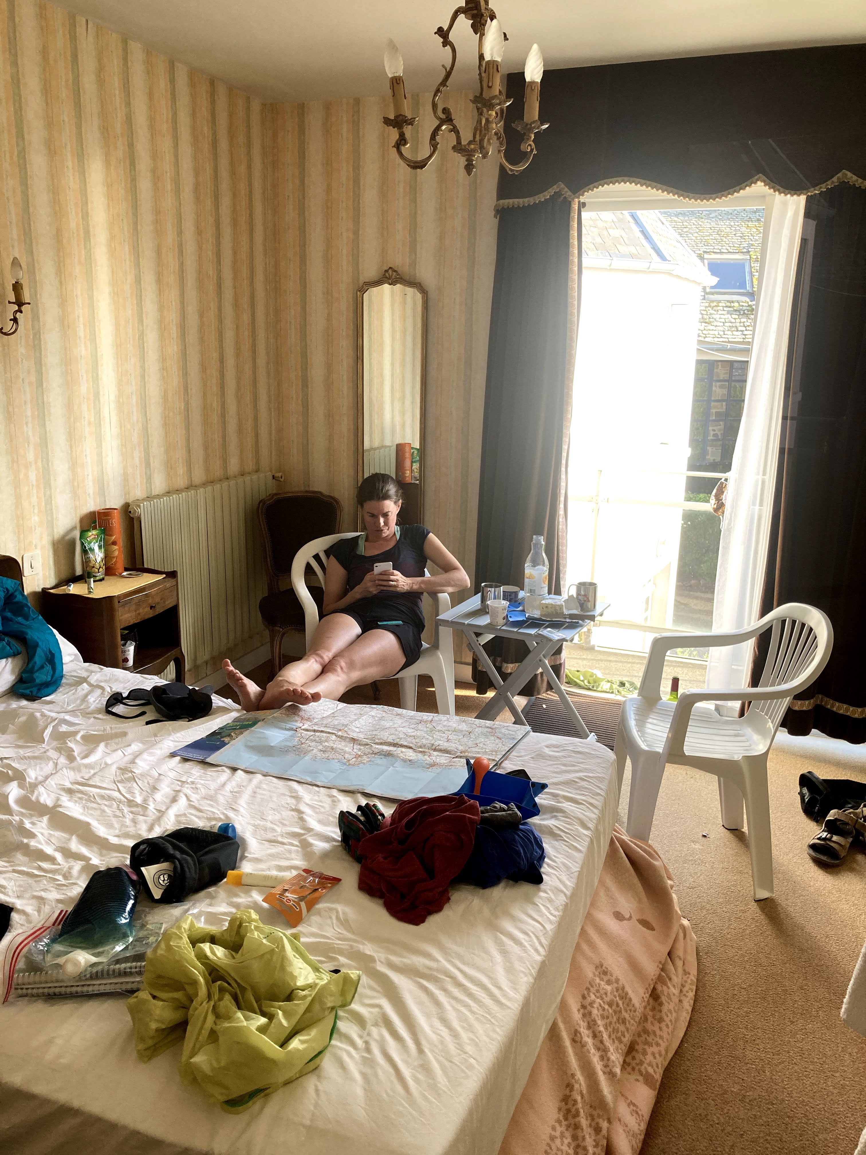 We downloaded a GPX track onto our Garmin GPS before we left, with all the cycle routes from http://www.garmin.openstreetmap.nl. We took four rechargeable AA batteries. Two to power the GPS, while the other two were charging from a solar panel on the back of my bike during the day while we rode. We also had a paper map of the region and two cycling guides for the main ‘Greenway’ bike routes which we found through the informative Brittany tourism website. These gave a bit history of the areas as well as details of detours and nearby attractions.
