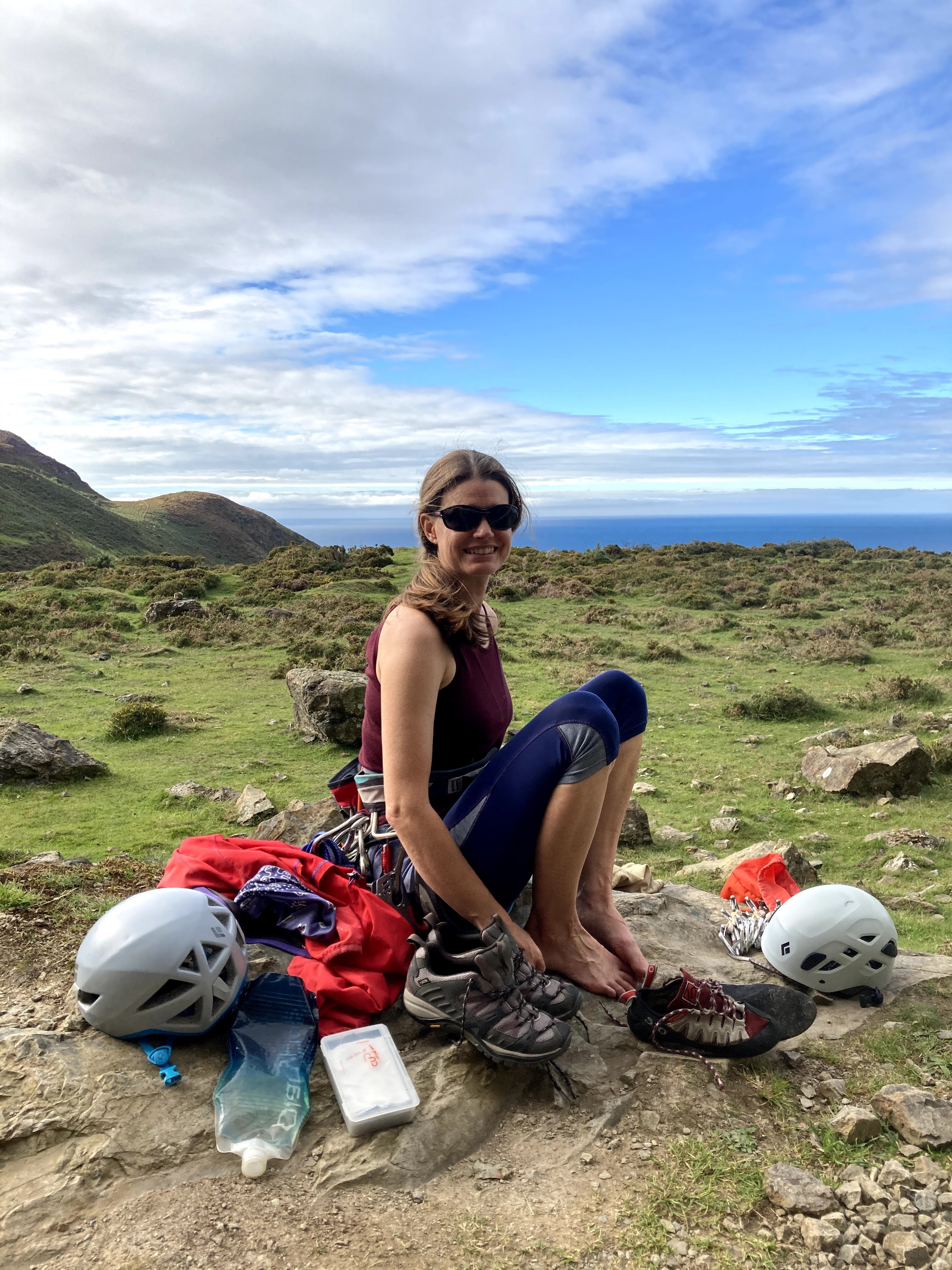 Hoorah! We’re allowed out into the big wide world again. Nicely timed with a one-day heatwave, where temperatures suddenly reached 25 degrees. The last two weeks really have blurred into a ‘period of time’, and it’s hard to remember exactly what happened when, or what we even did each day. But the days have actually been pretty packed and we’ve made the most of the enforced house arrest that is quarantine. It was also the first day in a very long time that I had to get up, look smart and go somewhere! With a freshly shaved face and new haircut, I reacquainted with the climbing stores, before meeting Clare at the coast to make sure I could still remember how to put my climbing harness on.