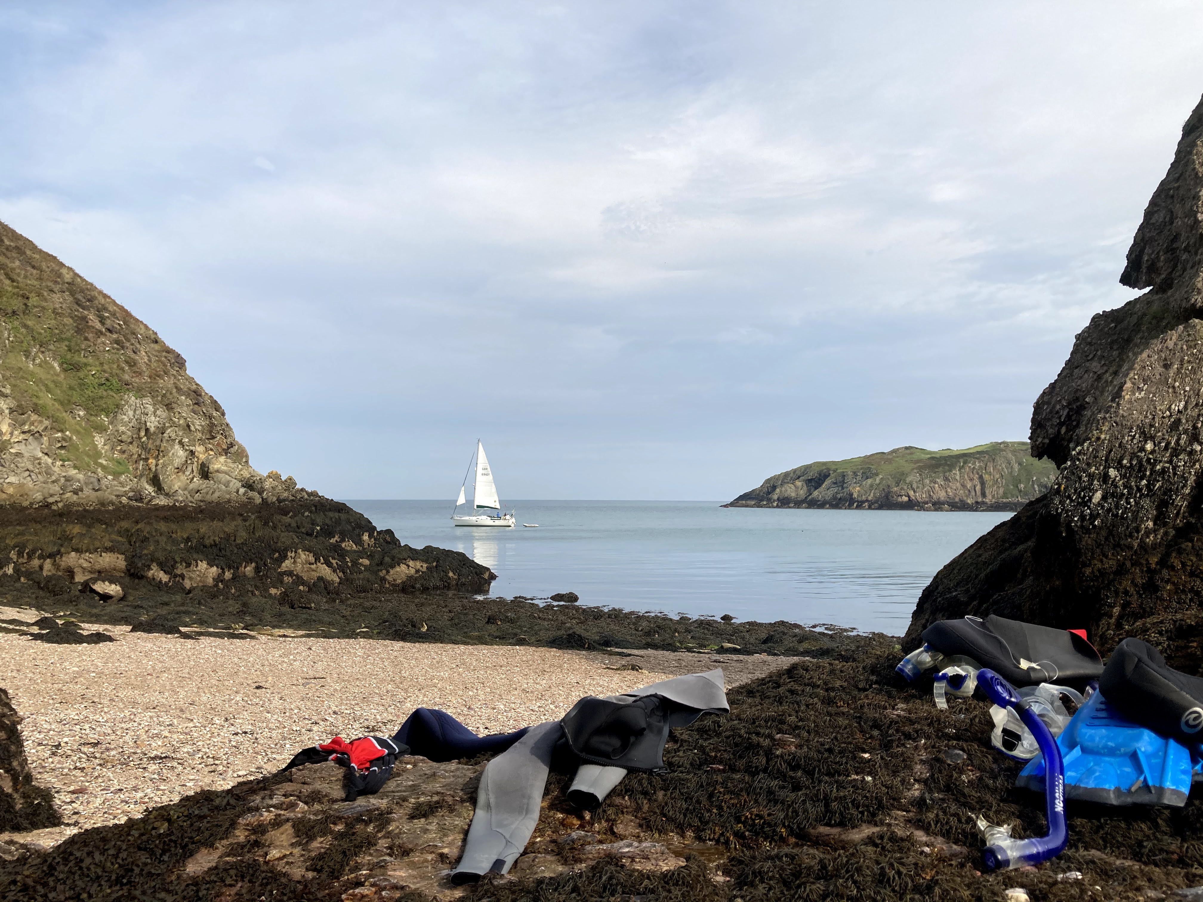 Incredible weather conditions across North Wales today, led to quite a lot of indecision as what to do! Rock climbing, sea kayaking, hiking?…. Flat calm conditions, wonderfully warm and not a breath of wind eventually led us to hiking out to the coast with the snorkeling kit. Once we’d finally decided, it felt like we’d made the best decision. Just the walk to the water was stunning.