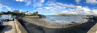 The mountains have been a very wet place over the last couple of days and while the rain was pouring down at The Cottage, I had little inclination to load up any kayaking kit and get on a river. In a bid to see a new view and the chance of some blue skies, we took the surfboards for a drive up to the North Coast of Anglesey. The boast on the sign at the entrance to the village of Cemeas, is that it’s the most Northerly village in Wales. Driving away from The Cottage, it was hard to imagine that the sun might actually be shining nearby, but sure enough, we arrived at high tide to find some brightness above us.