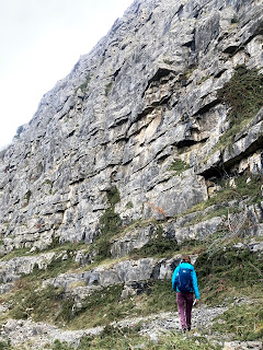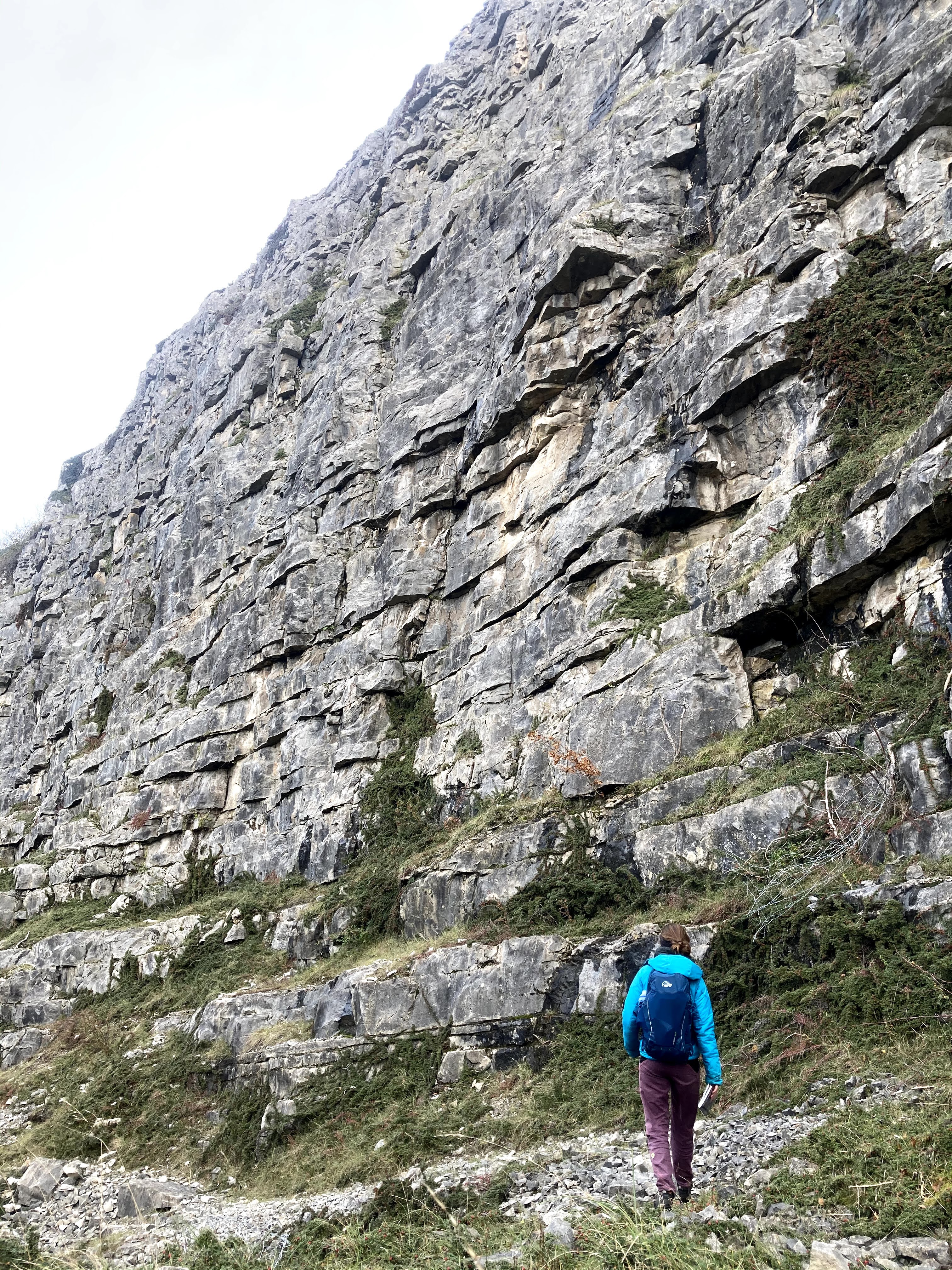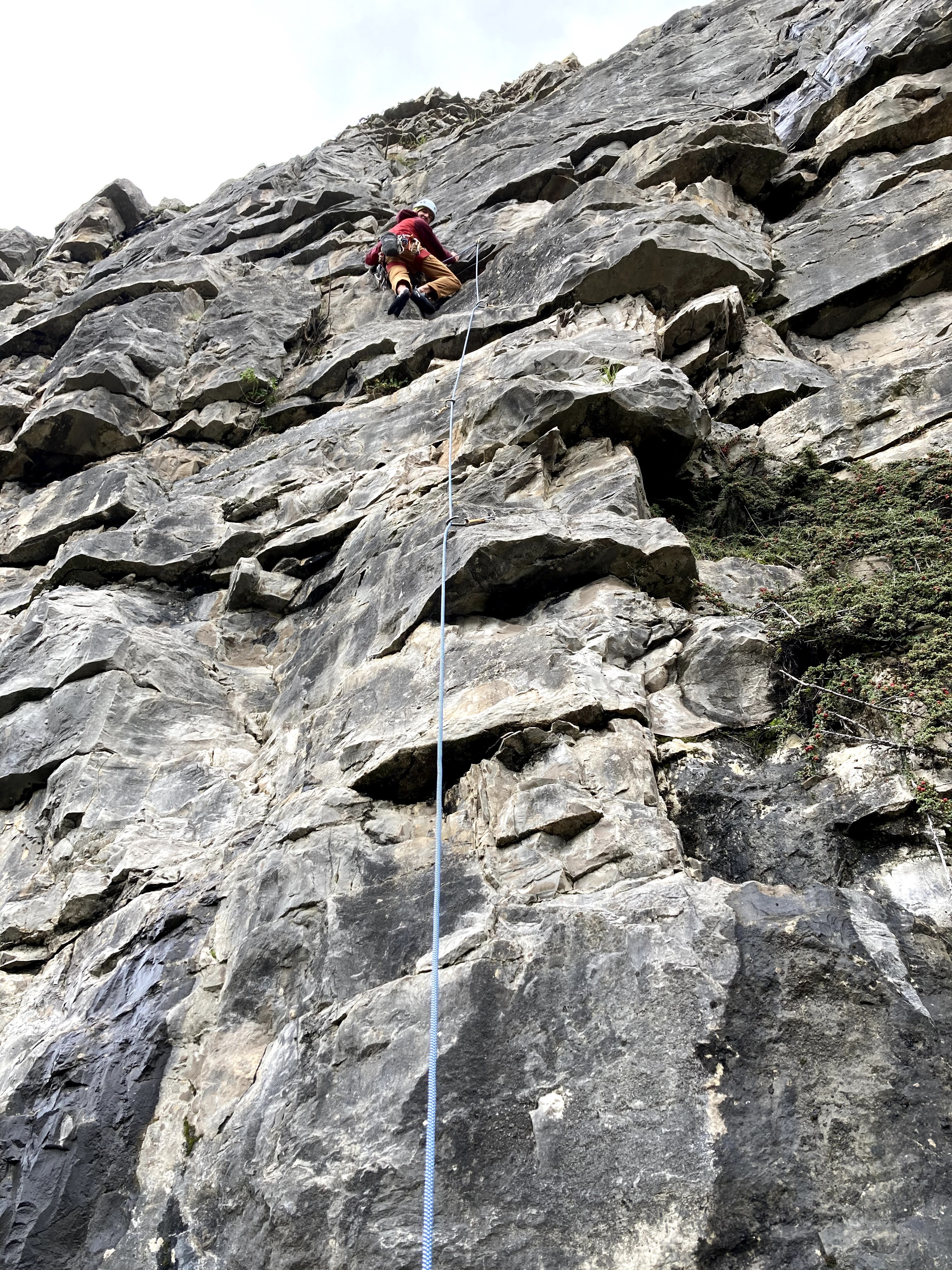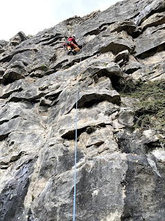 At nearly 30m high, it’s quite a big feature to have remained hidden until now! It’s an old quarried face, so made up of bands of rock. It was much more solid than it looked although the final few moves were a bit scrappy. Lots of crimps all the way up, which were all reassuringly positive to hold. Given that it was wet all day at The Cottage, we were delighted to be out climbing in the dry and even more so with a new cliff and view. We did one of the 6 climbs that have been put up, just before the rain made it around mid afternoon.