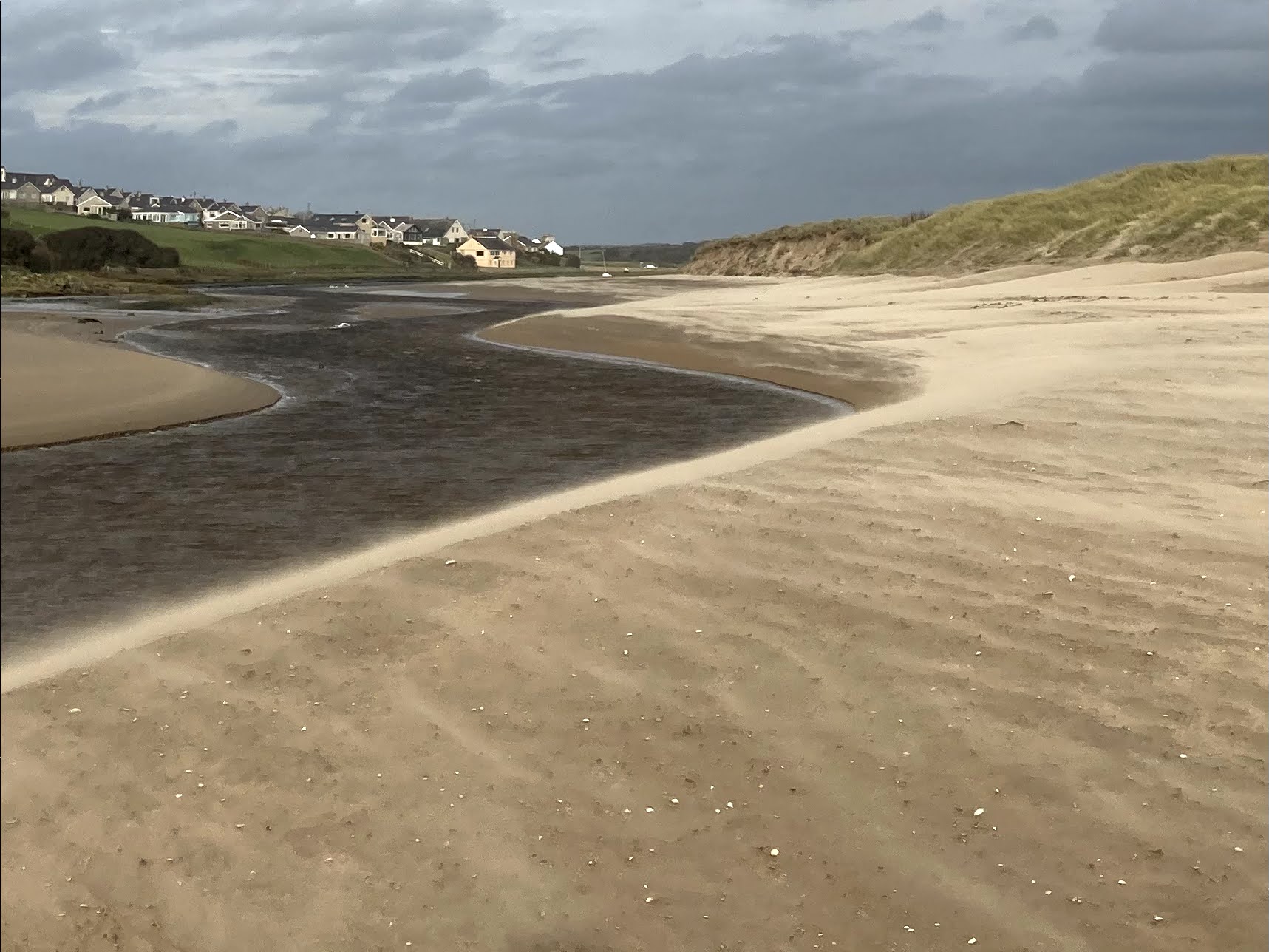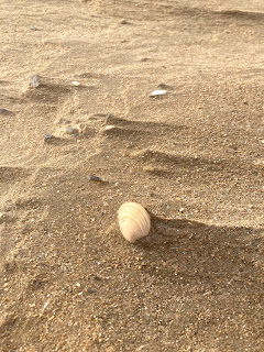 Further inland, the sand was blowing up into the air and shifting into new dunes. Just as blown snow carves out patterns around rocks or obstacles, the same was happening with the sand around shells on the beach. It was interesting to watch it move around, being picked up and deposited in predictable places. I could have made an avalanche forecast had it not been so flat!