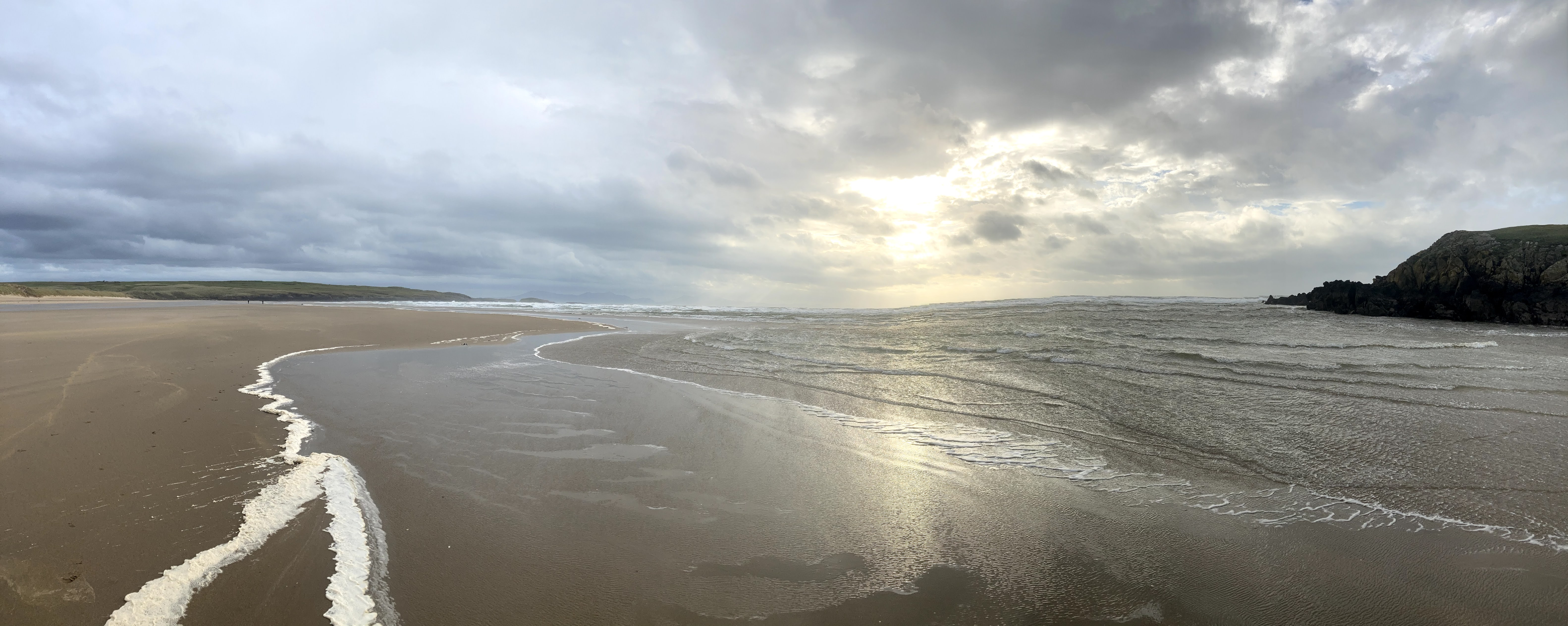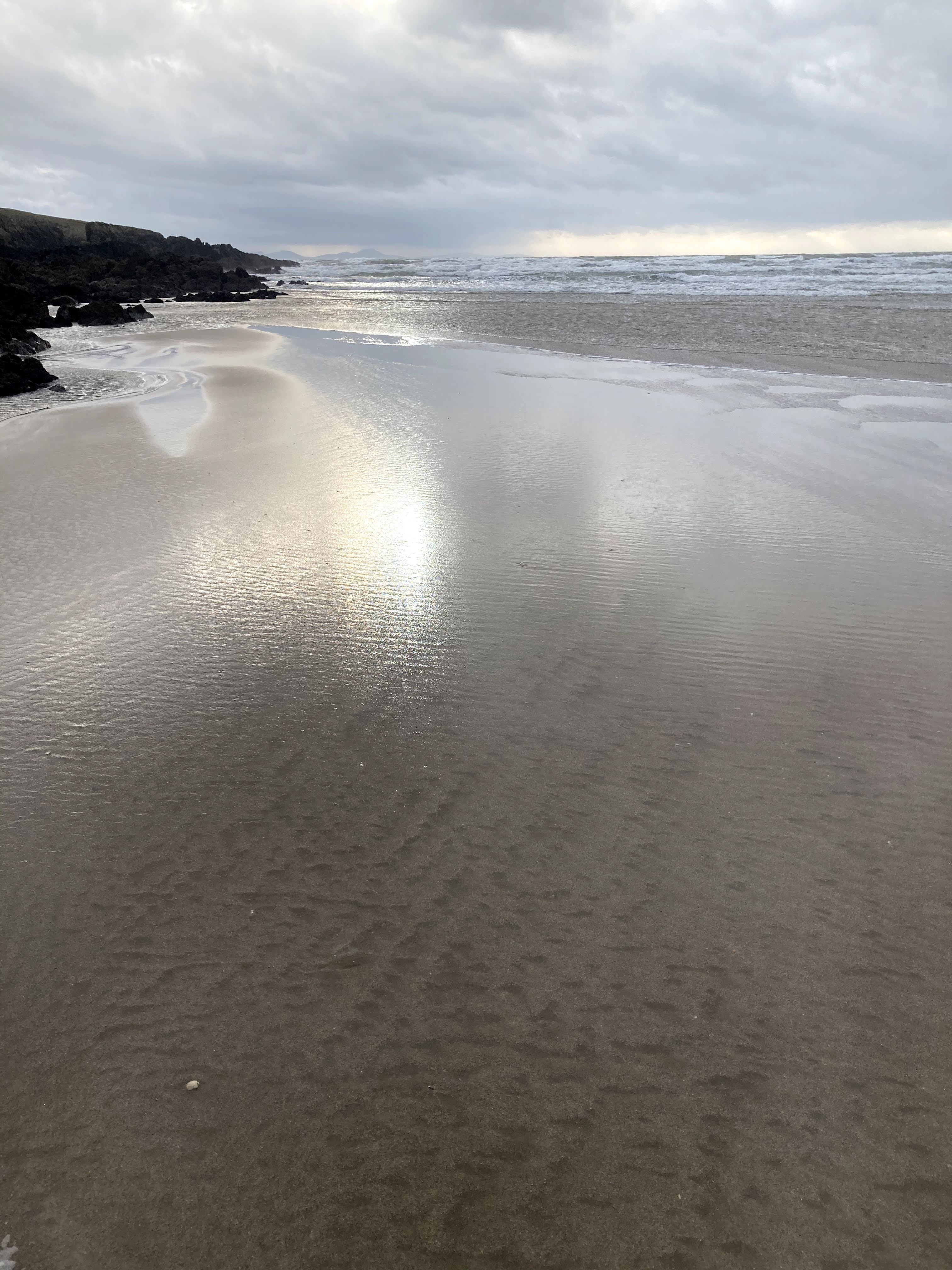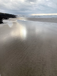 We took a nice walk along another empty beach. The winds whipped around us and the seas looked wild, but the sand at the water’s edge was smooth and firm.