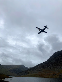 As we reached the base of the climb a Hercules flew overhead. It seemed to be moving too slowly and too low to stay airborne as it banked around into the Nant Ffrancon. How do they stay up there?!…