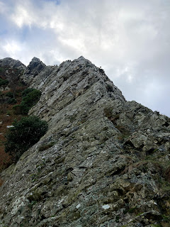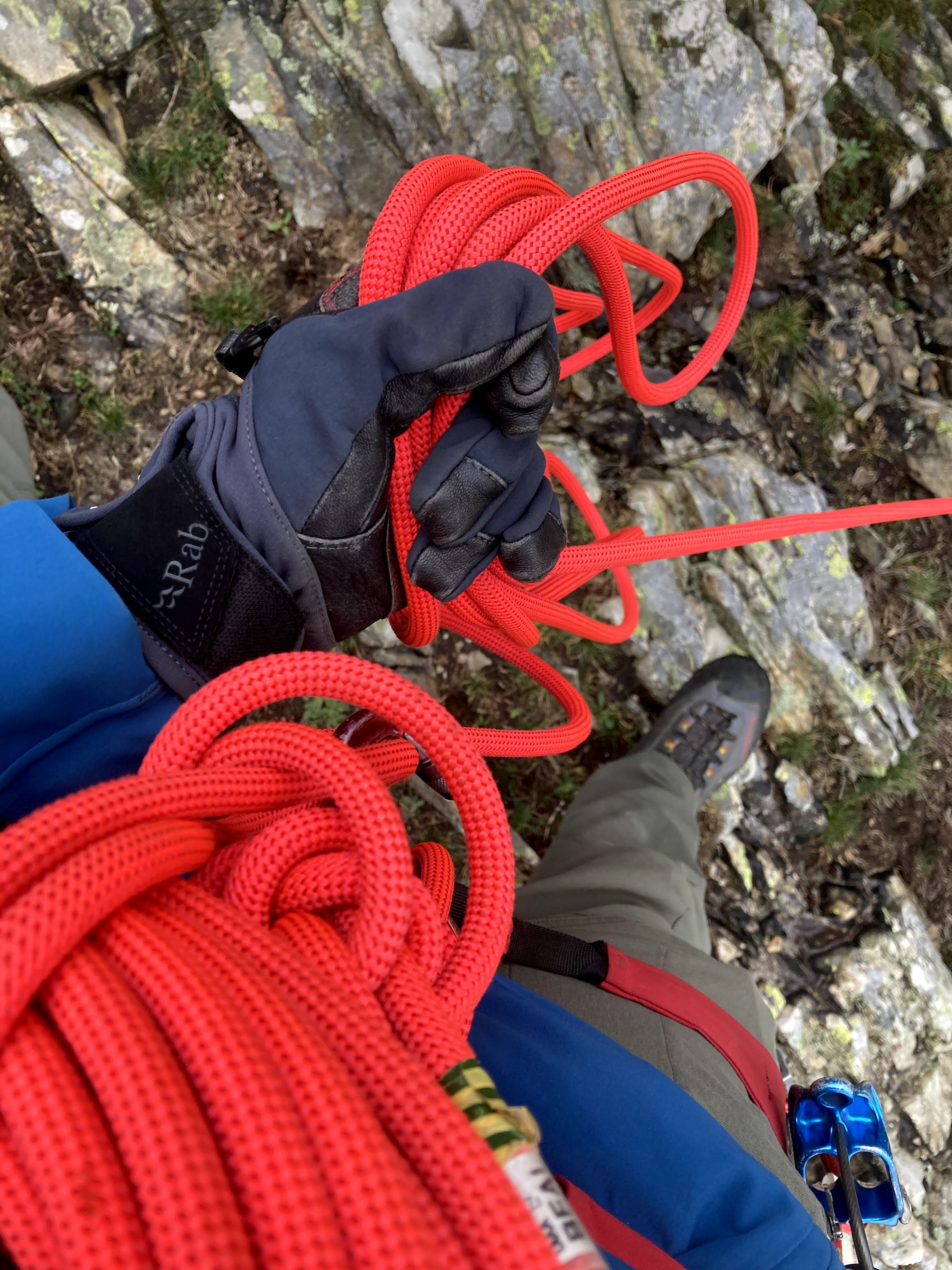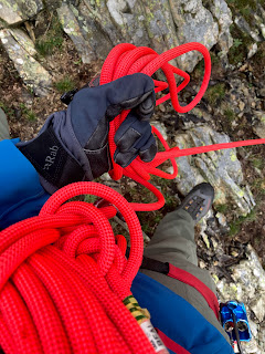 With my students tied on, we climbed it in about six little pitches before moving together across the easier section. My leather Rab scrambling gloves are perfect for this sort of thing and it felt really secure to have them on in the cold temperatures.