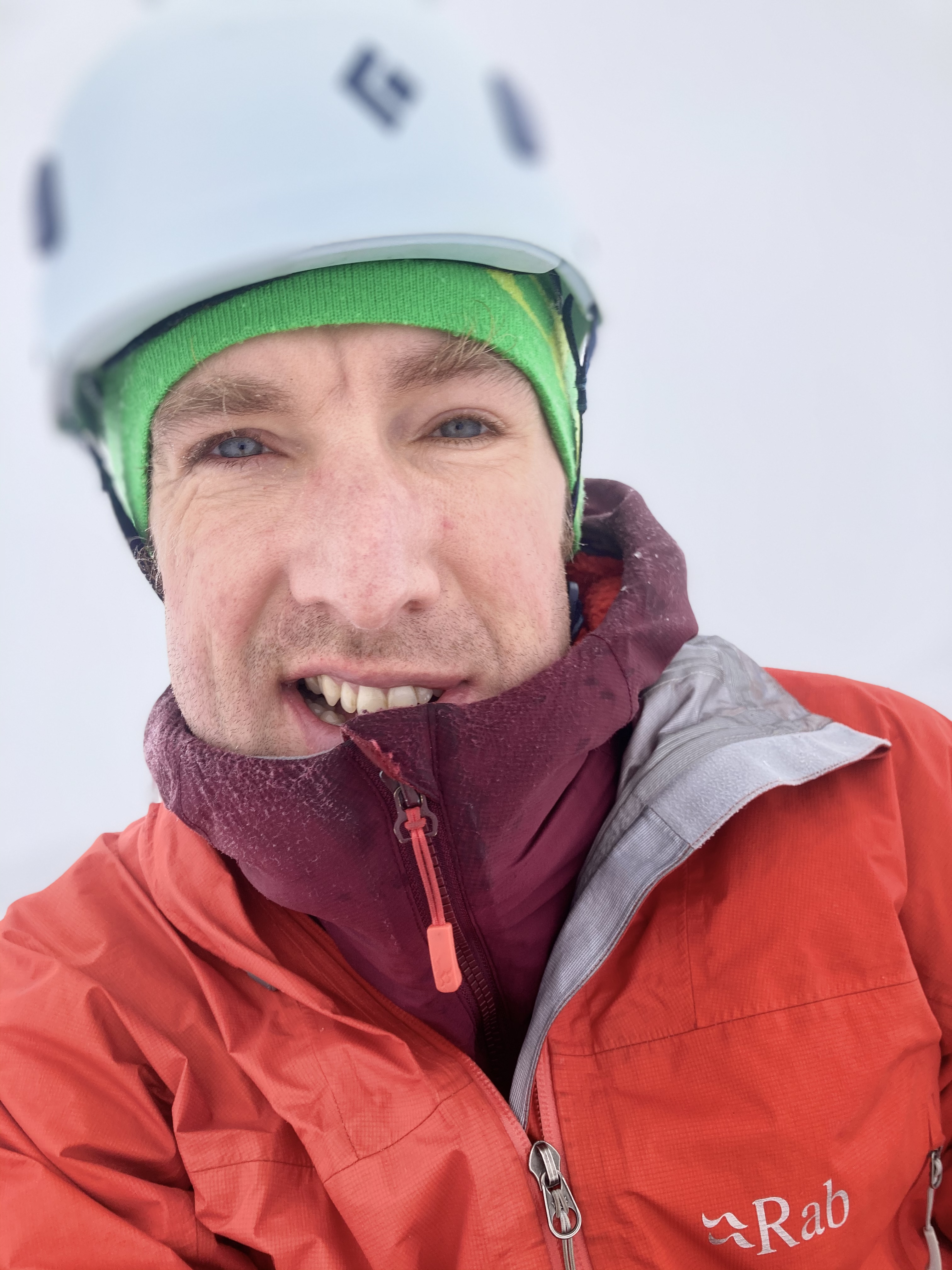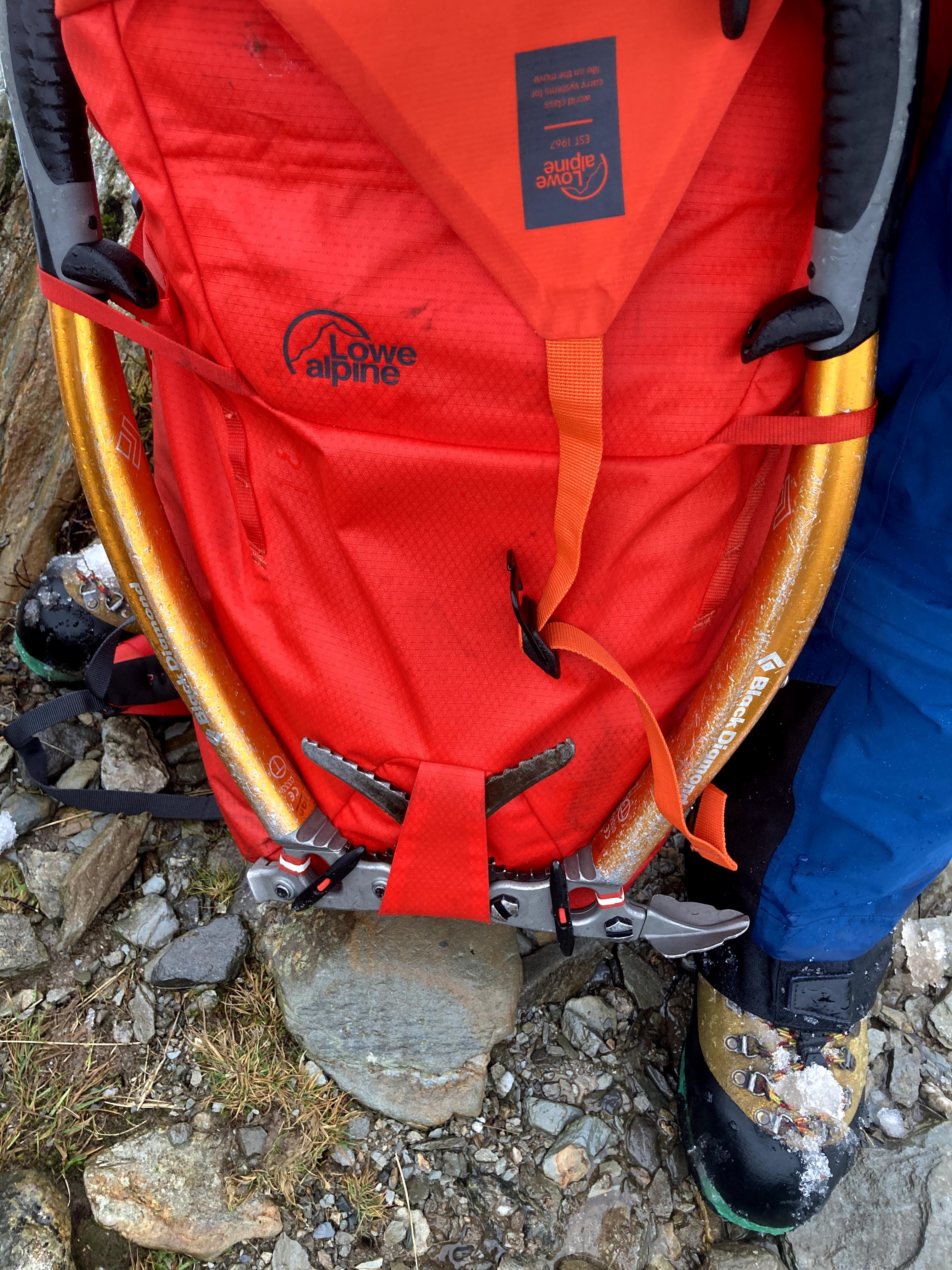 Rain was forecast for later in the morning and it started to snow while I sat happily on the summit, protected from the cold wind. Given how sheltered it was in the gully, I decided to descend the same way as the snow was good and firm. I practiced a few techniques on the way down before reaching the end of the snow line. I was using my new Lowe Alpine ‘Uprise’ Rucksack and I can very much recommend it. It’s super lightweight and slim to wear, which makes it very unrestrictive while climbing. It was also really quick and easy to stash my ice axes at the end of the day before walking back down the mountain.
