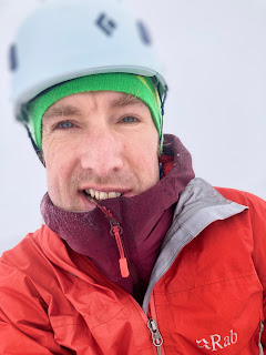 Having spoken to a friend yesterday who had been on a British Mountain Guides training day there yesterday, I knew I’d have no trouble walking in as they’d very kindly left a nice track all the way to the base of the route. Where the ground began to steepen, I put on my crampons and helmet, while delighting in the fact that overnight snow had filled in the steps leaving a pristine snow slope for me to pick my way up.