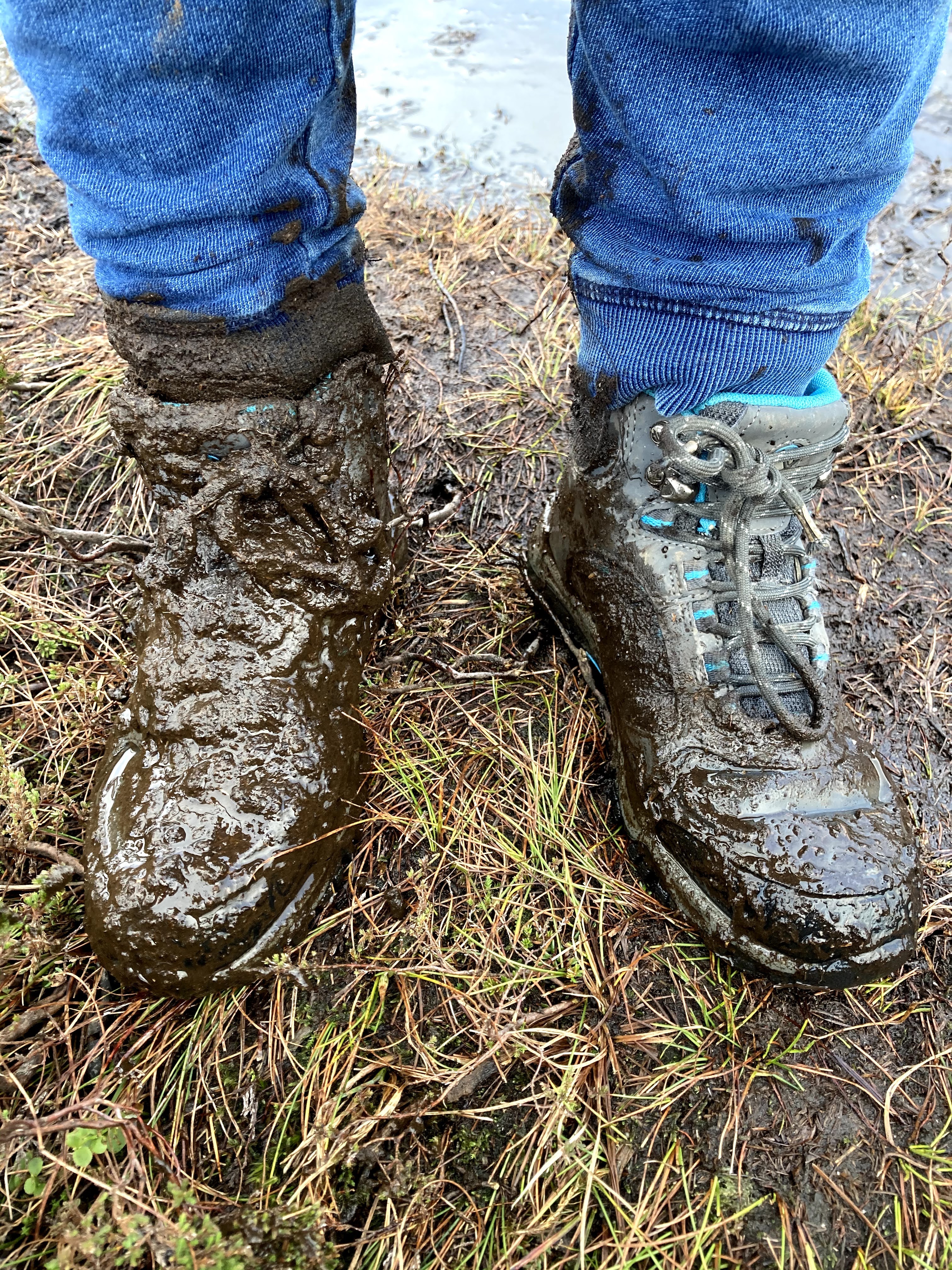 Between the (easily avoidable, yet compellingly attractive) deep mud pools, we hiked around the base of the peak, through the dense forest to keep out of the cold winds.