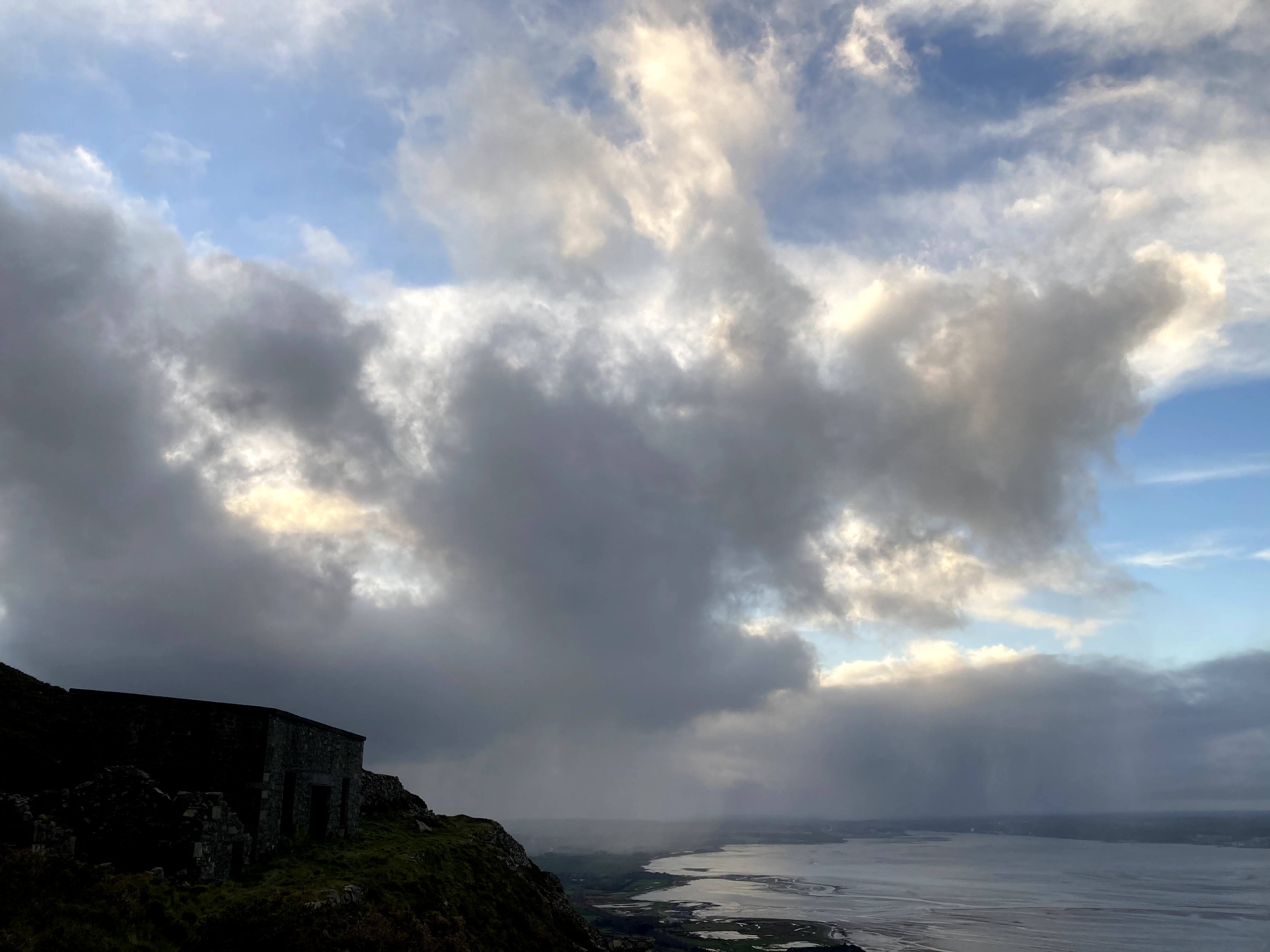 We stayed nice and dry. There is an old quarry with loads of relics of days gone by, left rotting and rusting on the edge of the world.