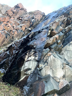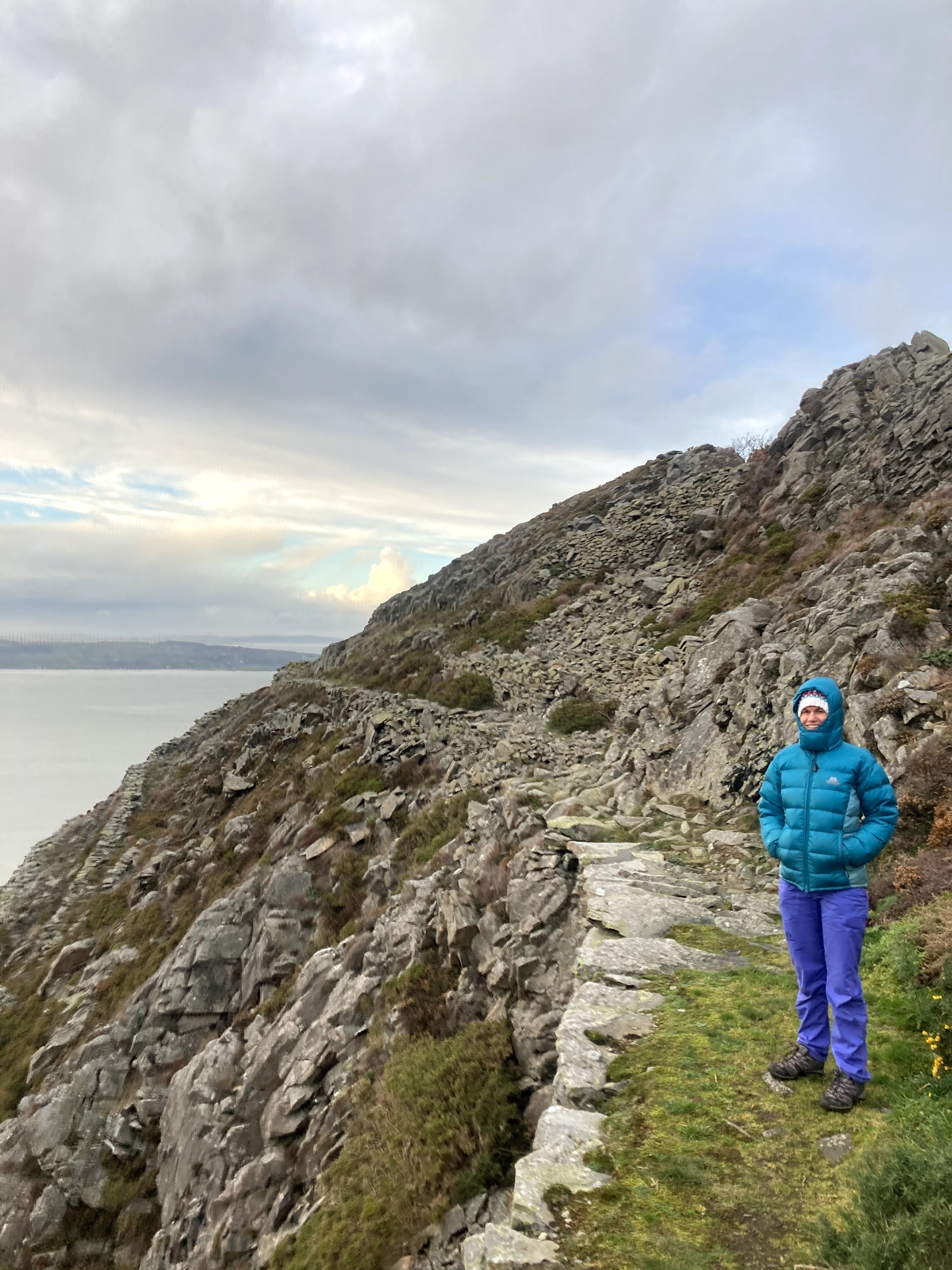 A blustery, damp cold afternoon in the mountains, but marginally better on the coast! With a new local climbing guidebook in hand, we went to Pen Mountain to see if any of the newer climbs there looked worth a visit once the weather warms back up.