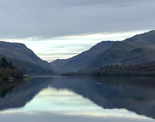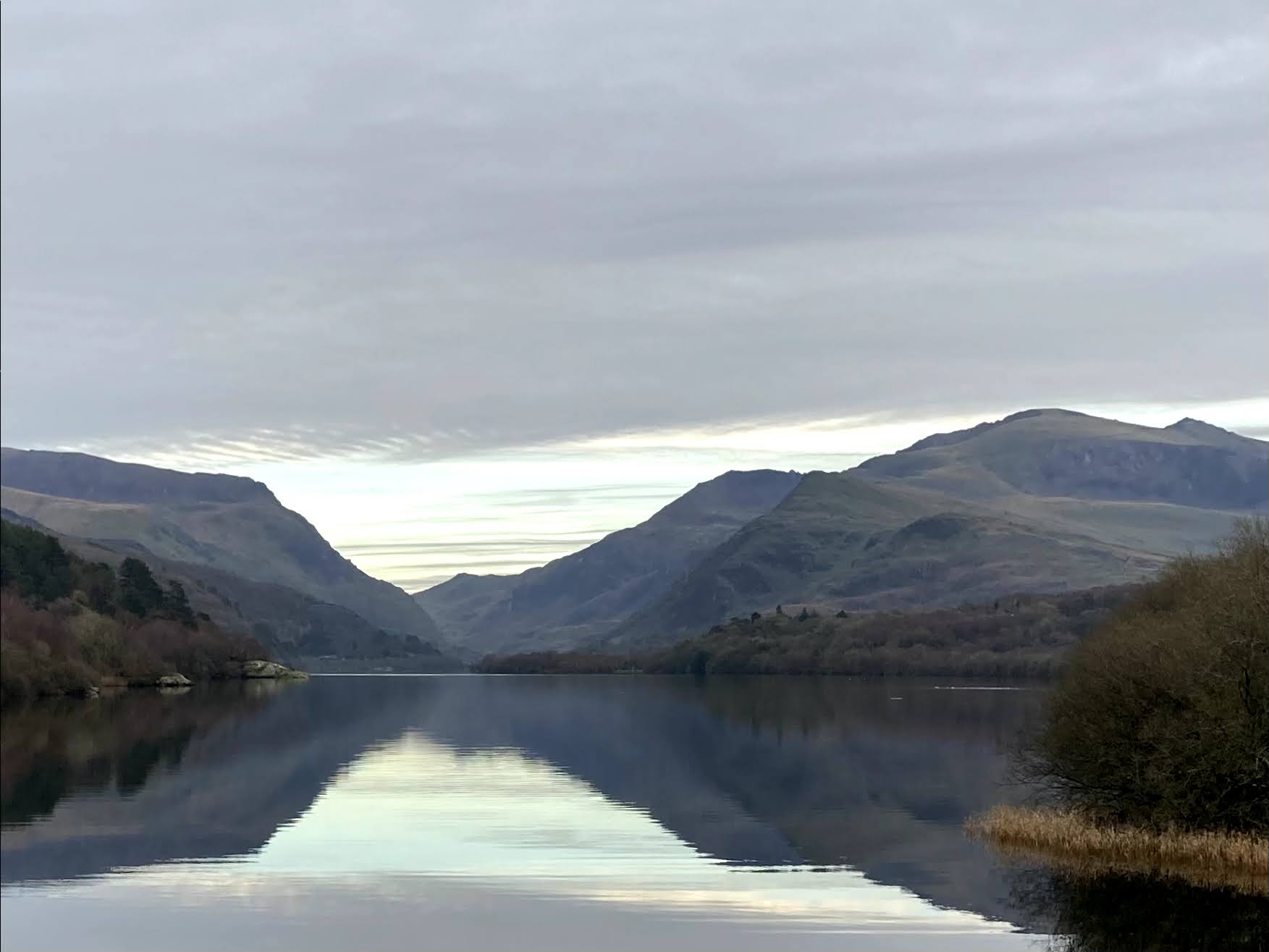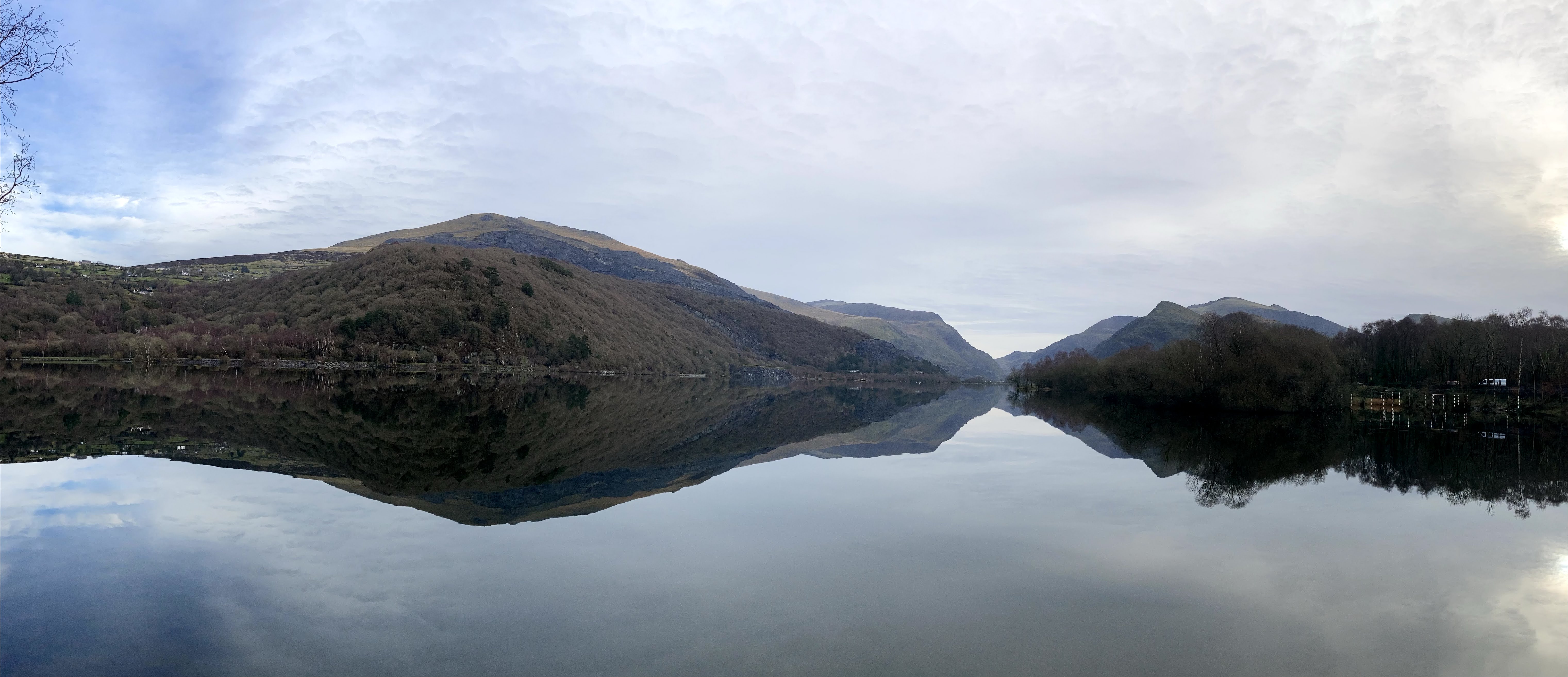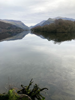 We followed the lakeshore, stopping every now and then to take a photo of the view with the Llanberis Pass and Snowdon in the distance.