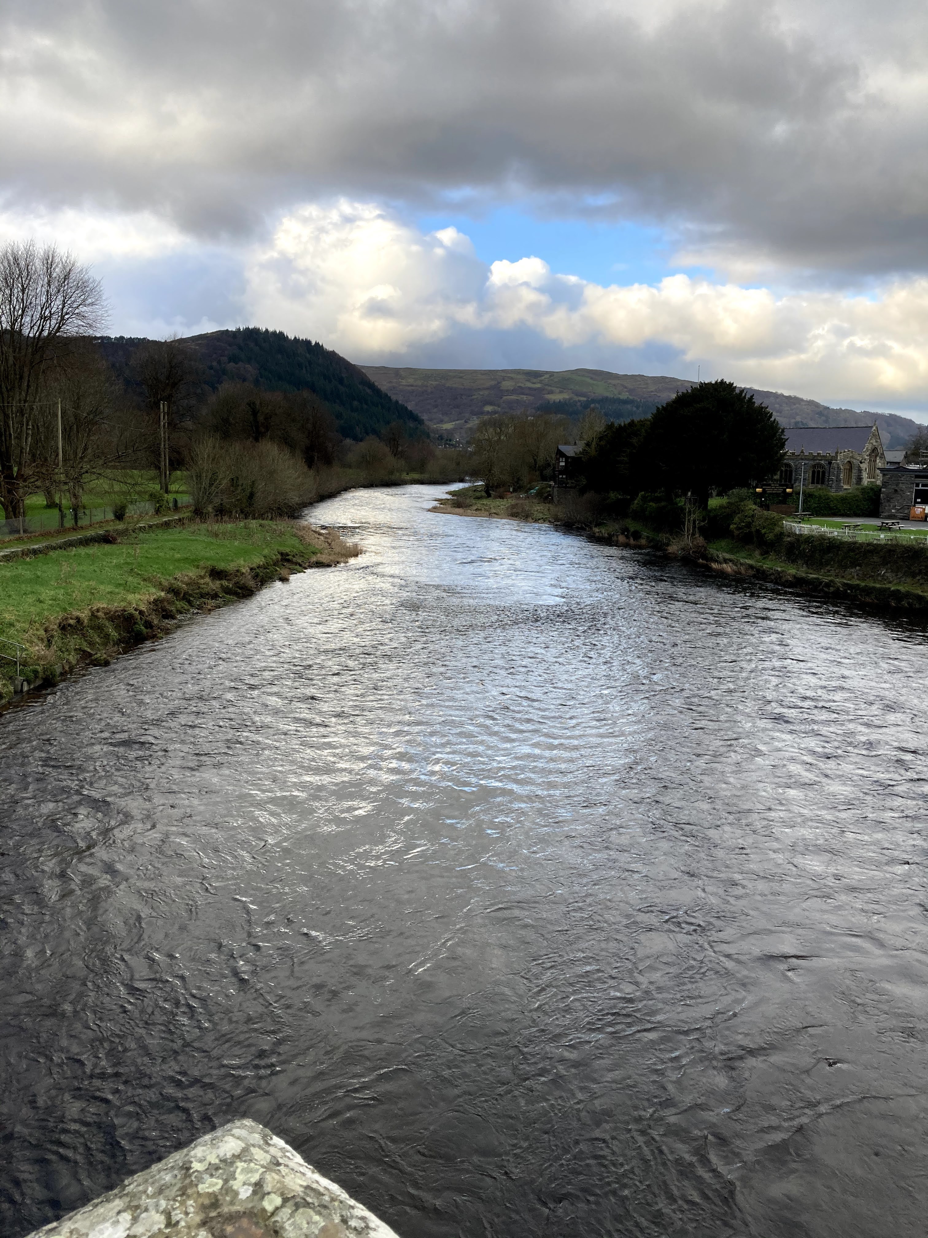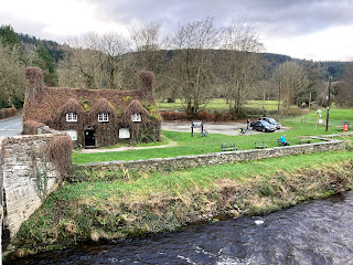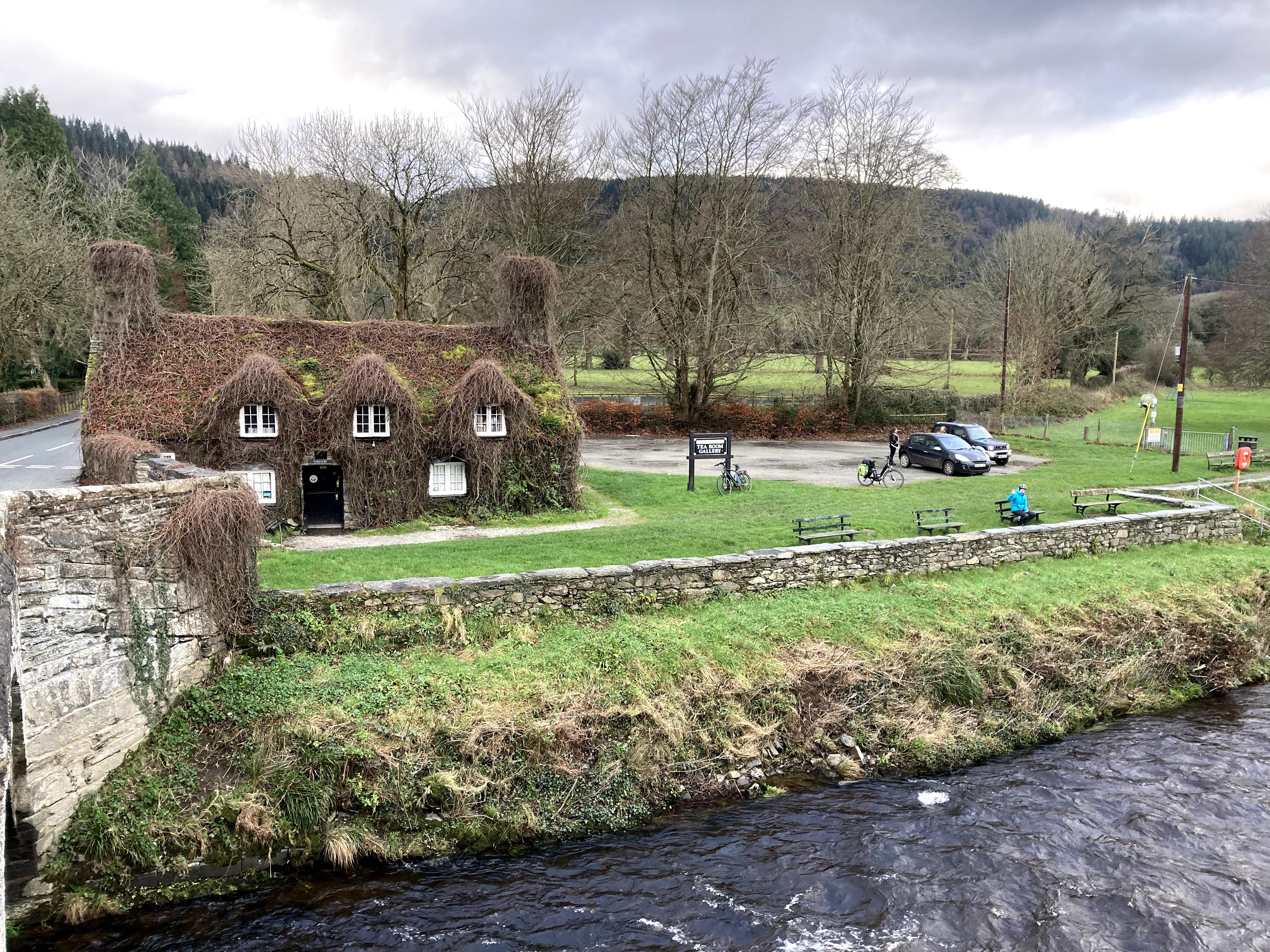 We stopped for a drink in the town square at Llanwrst, then ticked another classic North Wales tourist sight – the hairy house – as we crossed back over the river on the old stone bridge.