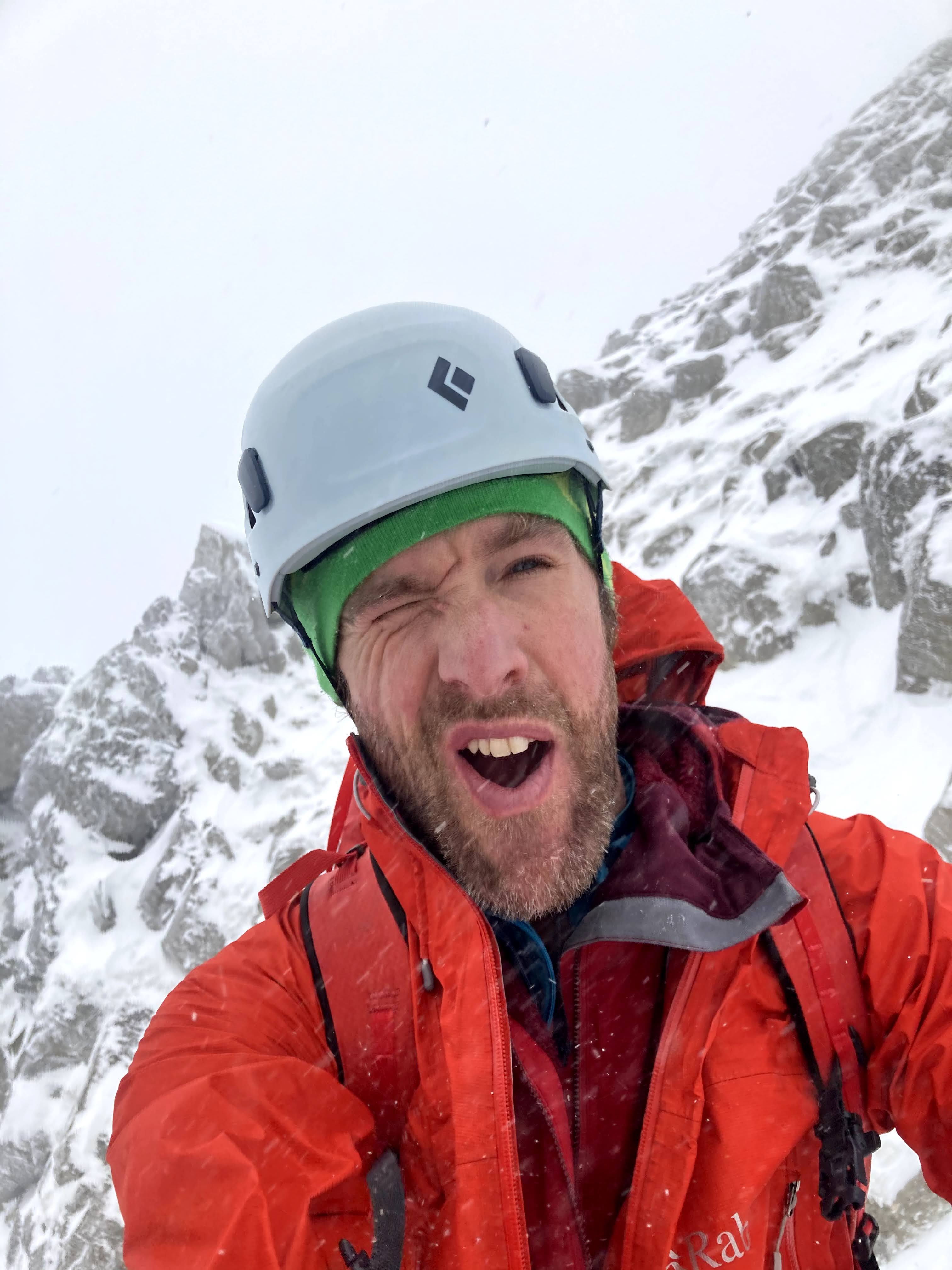 Halfway up, I was over the trickiest section, and to continue upwards was now the best course of action. I was in my element – until a gust of wind covered me in spindrift.
