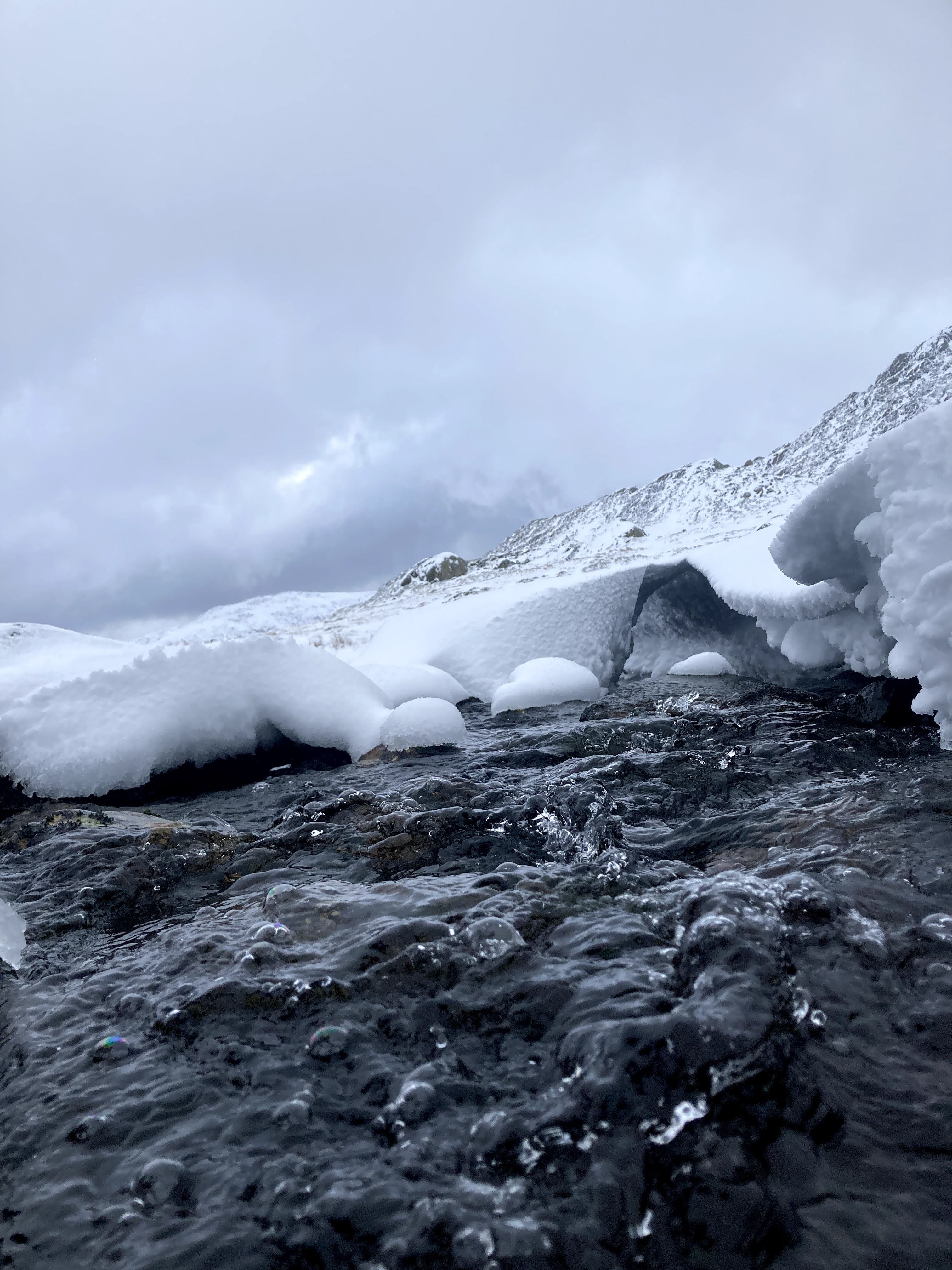 There were even snow arches! While crossing this stream, I stopped for a close up look.