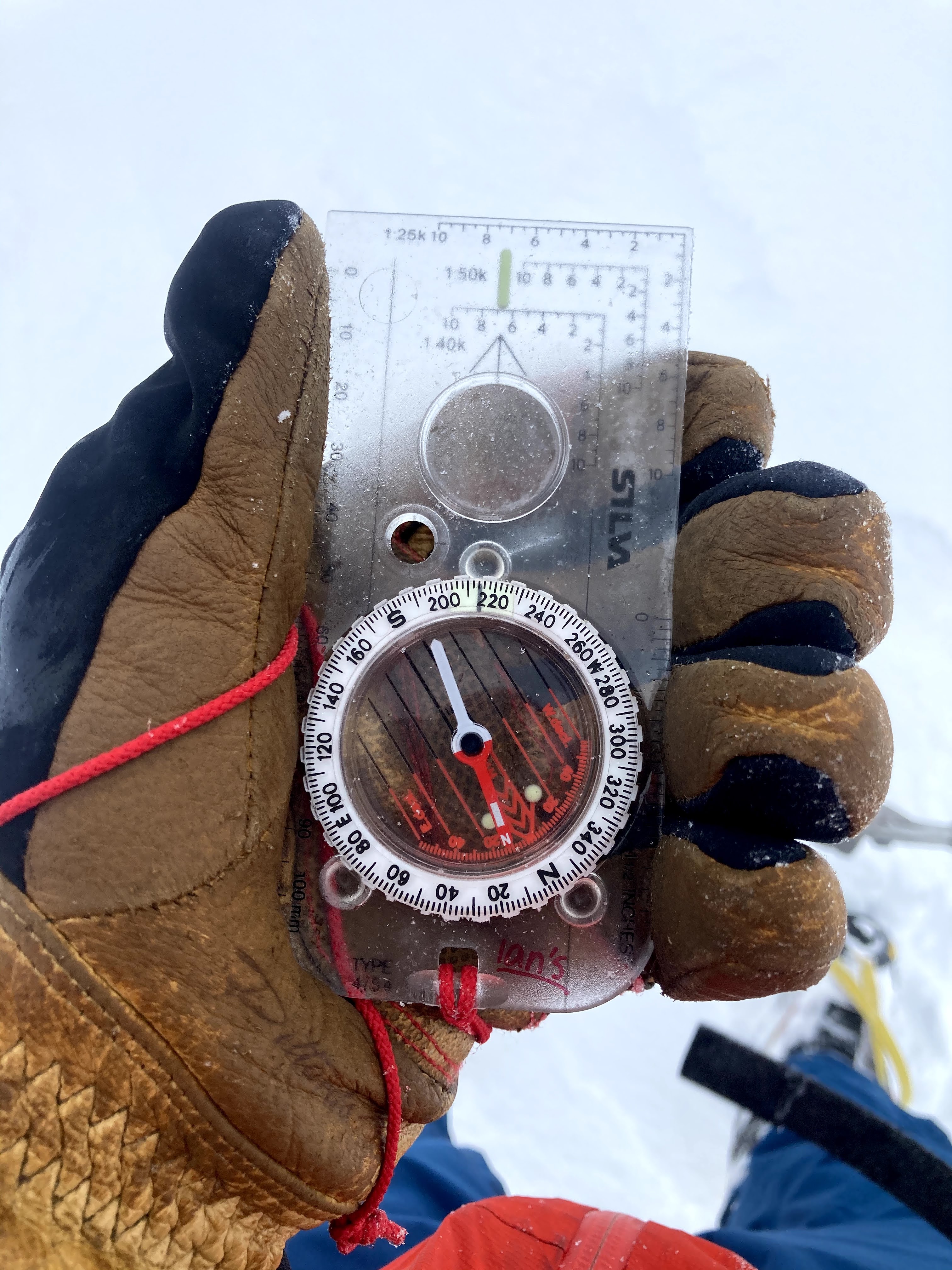 It’s been a full whiteout on the mountain tops for the past couple of days and plenty of snow has been put down in amongst the low cloud. Up on the summits, I needed my map and compass to be able to navigate safely from the summit. It’s been a while since I had to do this for real – trusting the compass and my ability to pace a set distance, when all around is white. Having no definition between land and sky with no features to gauge any perspective, distance or slope angle is sensory deprivation that you don’t get every day. Without even a footprint to follow or a rock sticking out of the snow to confirm which way was up, I had to stay alert – it was all rather exciting and it felt good to be using my skills. And a warm sense of satisfaction rose as the plateau cairn eventually came into view, only 10 meters away from me. Now I knew exactly where I was and had somewhere to take shelter from the ever-increasing wind.