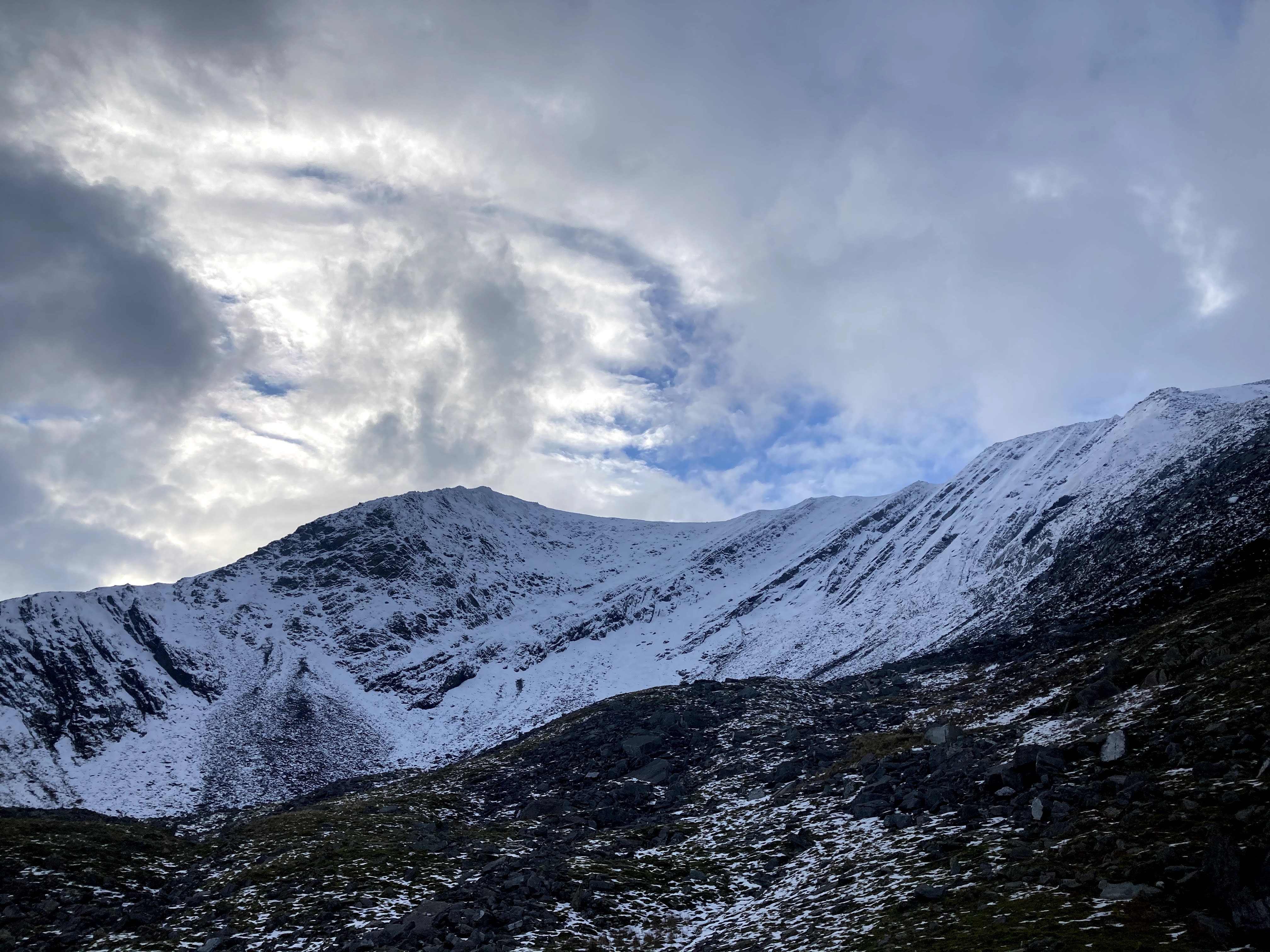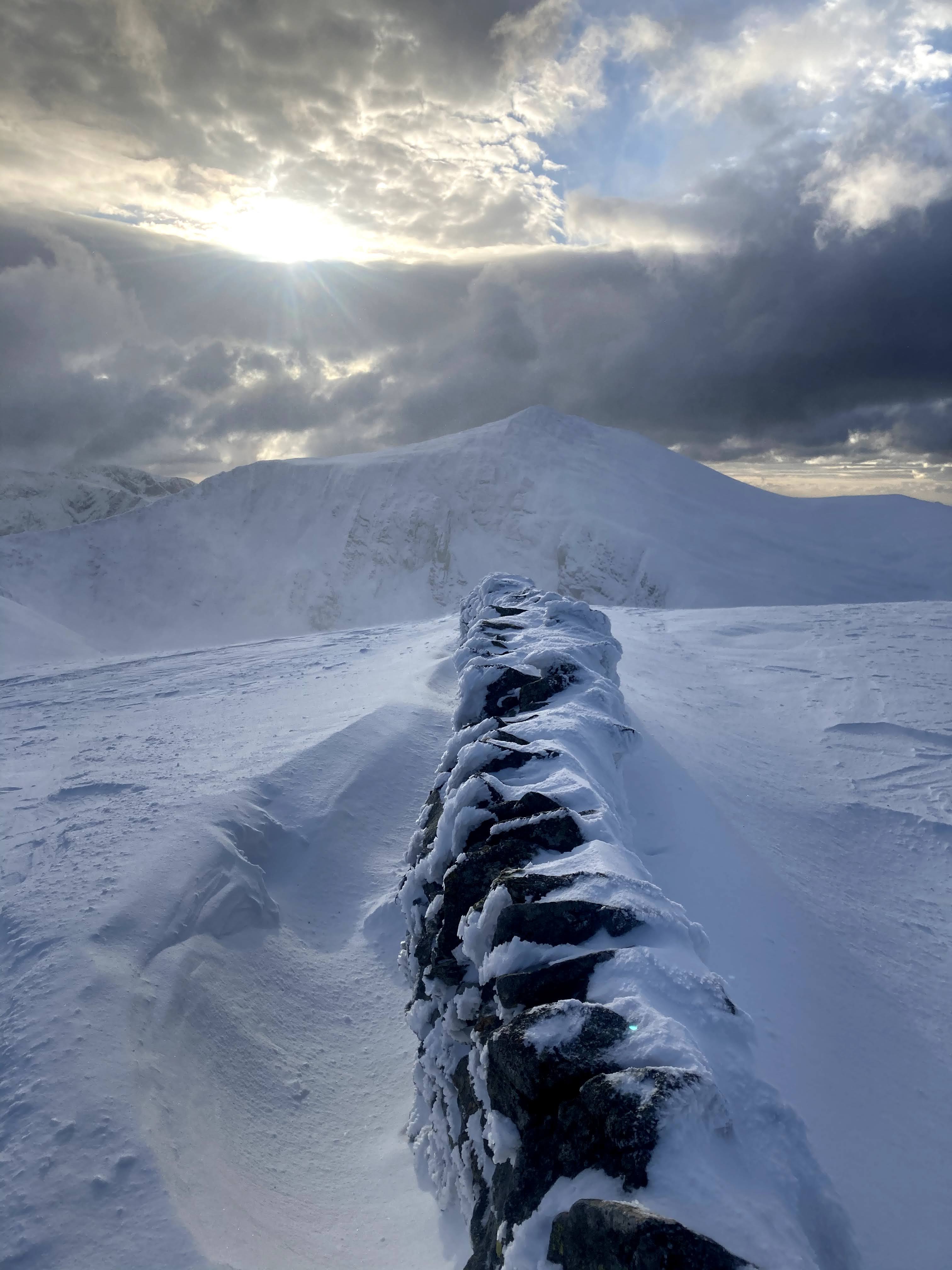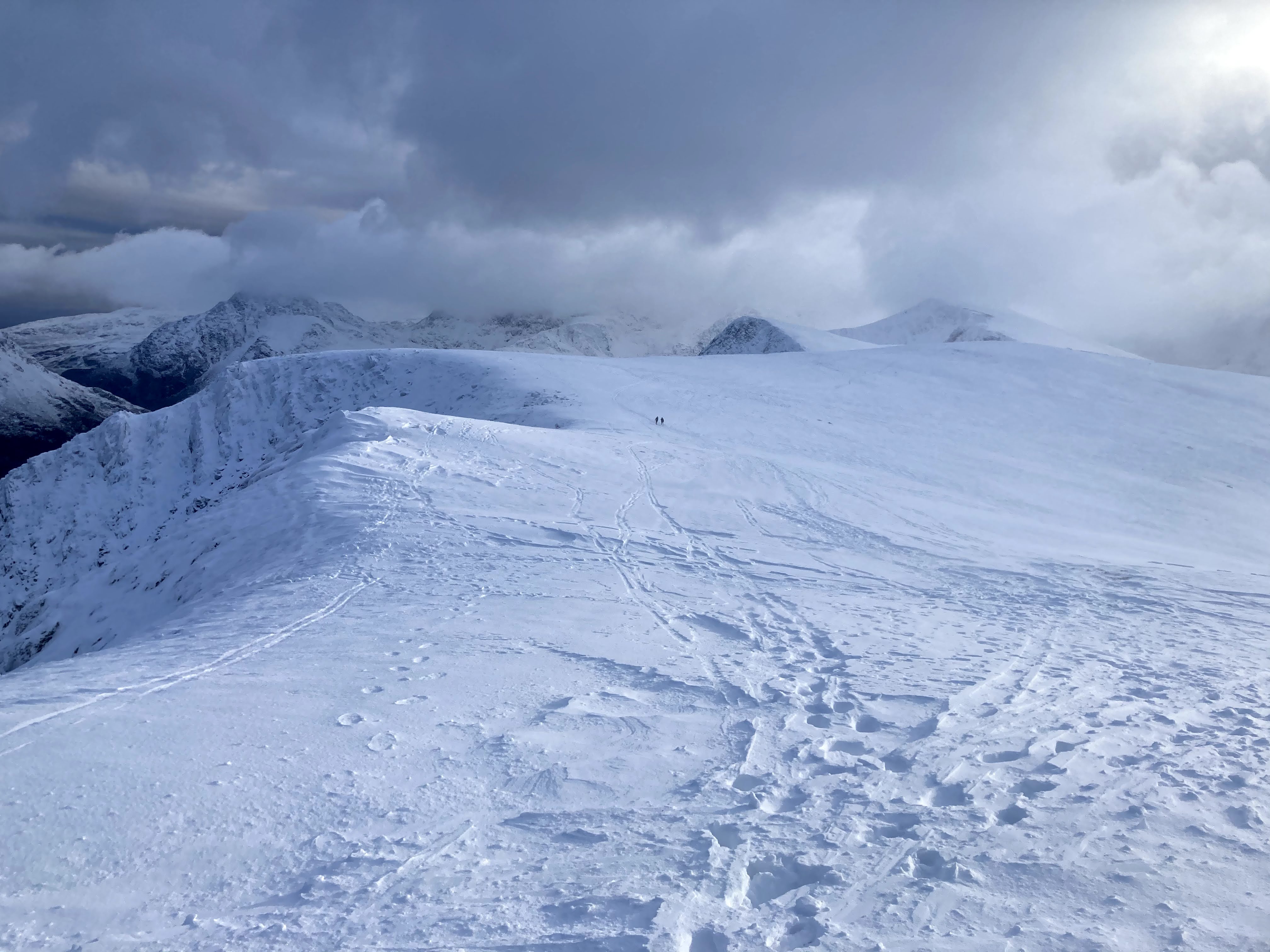 A straightforward hike up had me at the base of the ridge just in time to meet the snowline. From then on, it was a case of following the crest of the ridge to the summit.