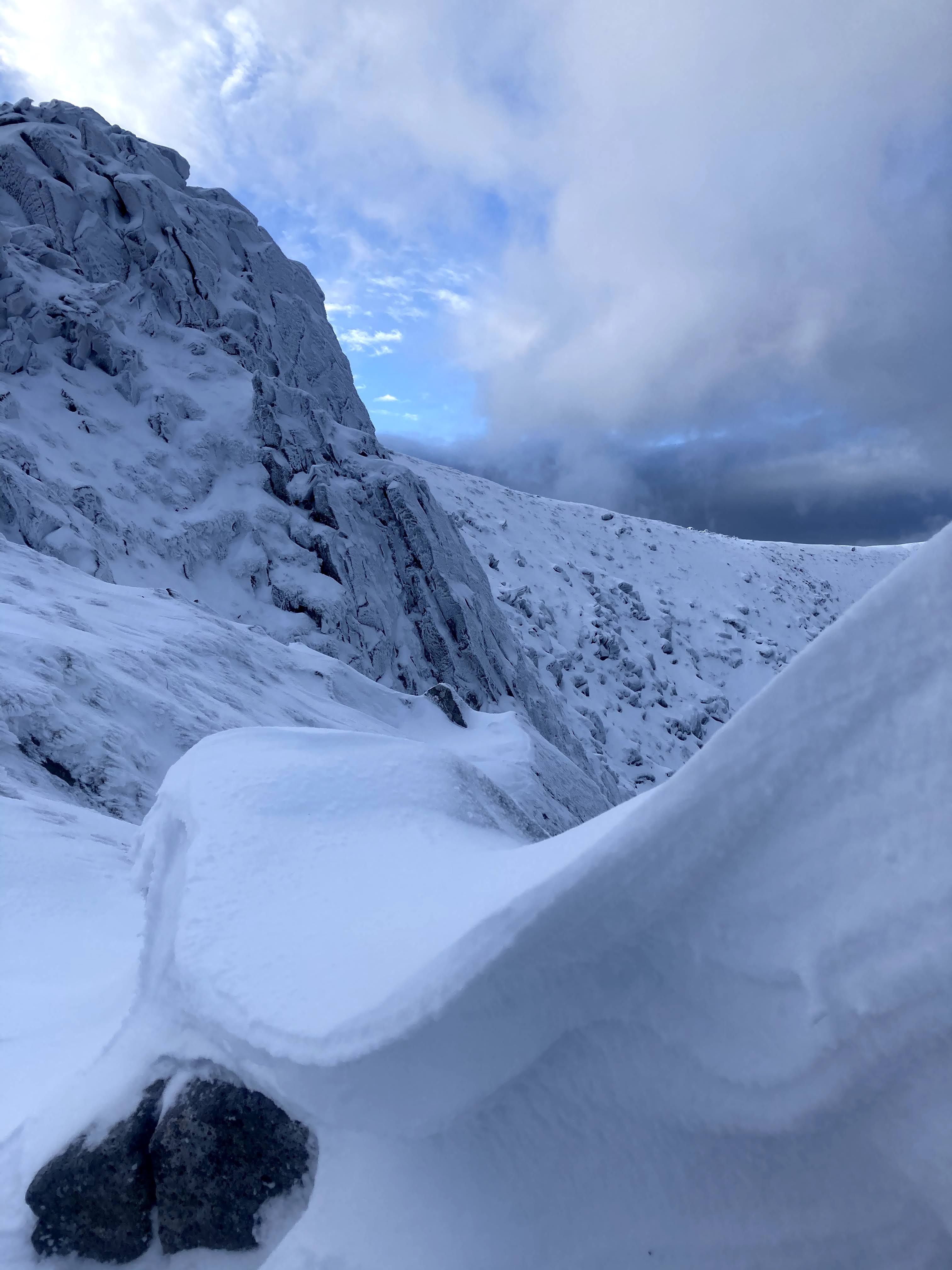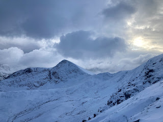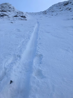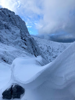 The views on either side were fantastic and I could pick out various new lines and gullies to explore further once the snow has consolidated further.