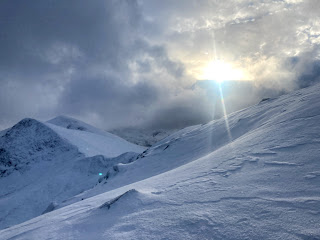 On the tops, the wind was howling from the east, picking up snow and blowing it all around.