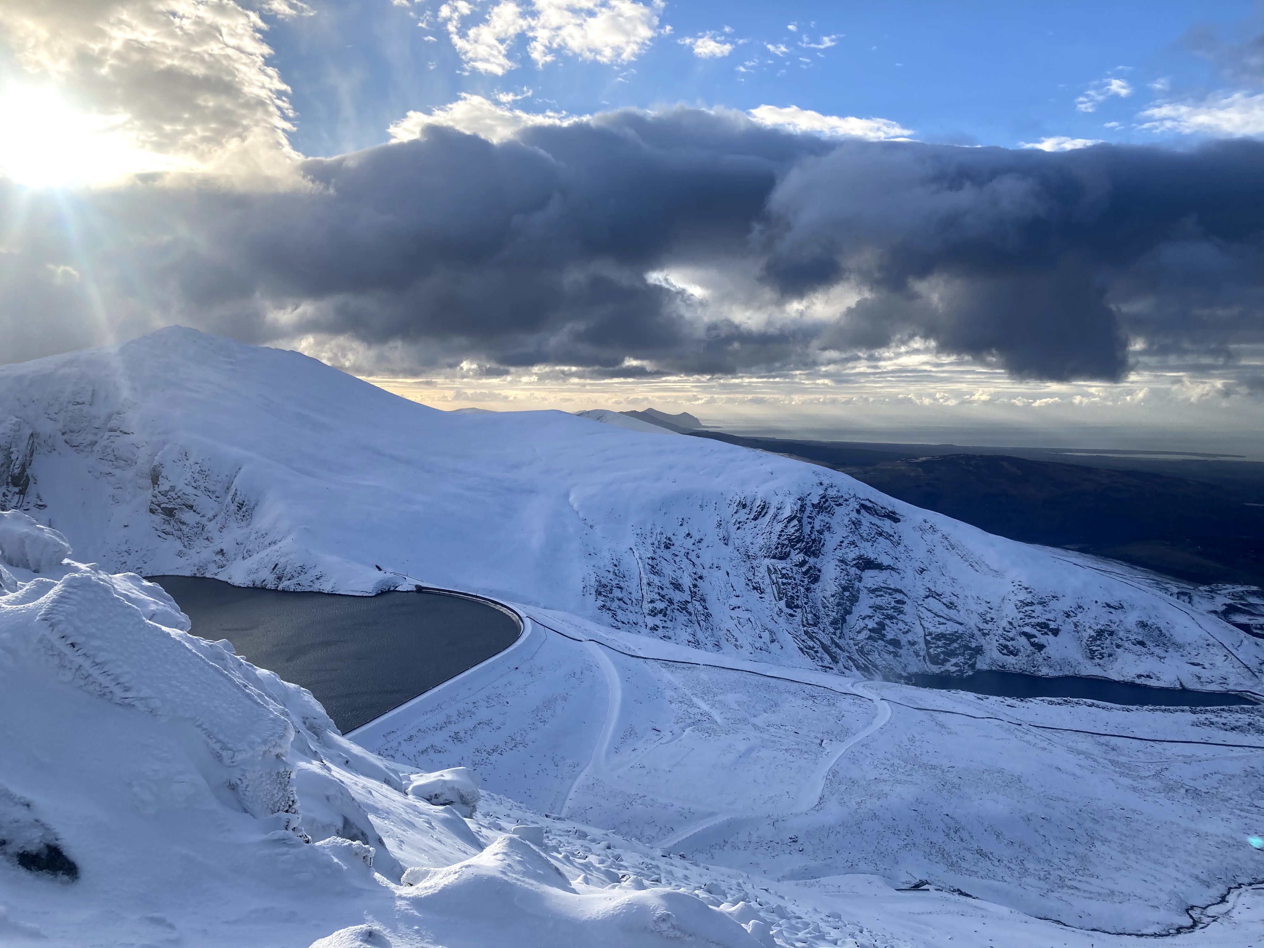 I followed tracks onto the summit of Carnedd y Filiast, where I could see our ski routes from earlier in the week on the other side of the valley.
