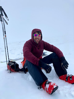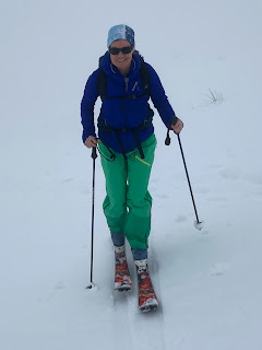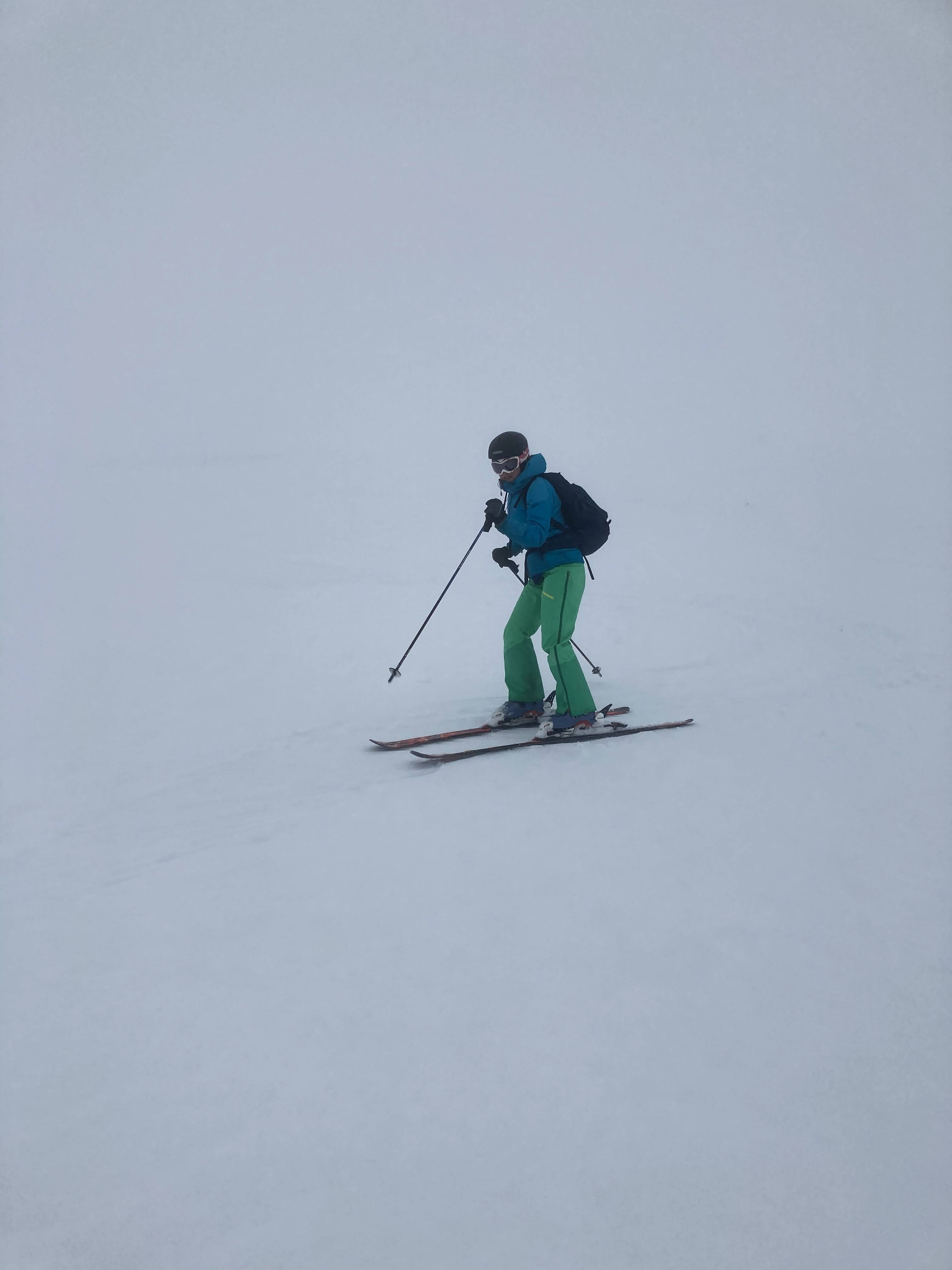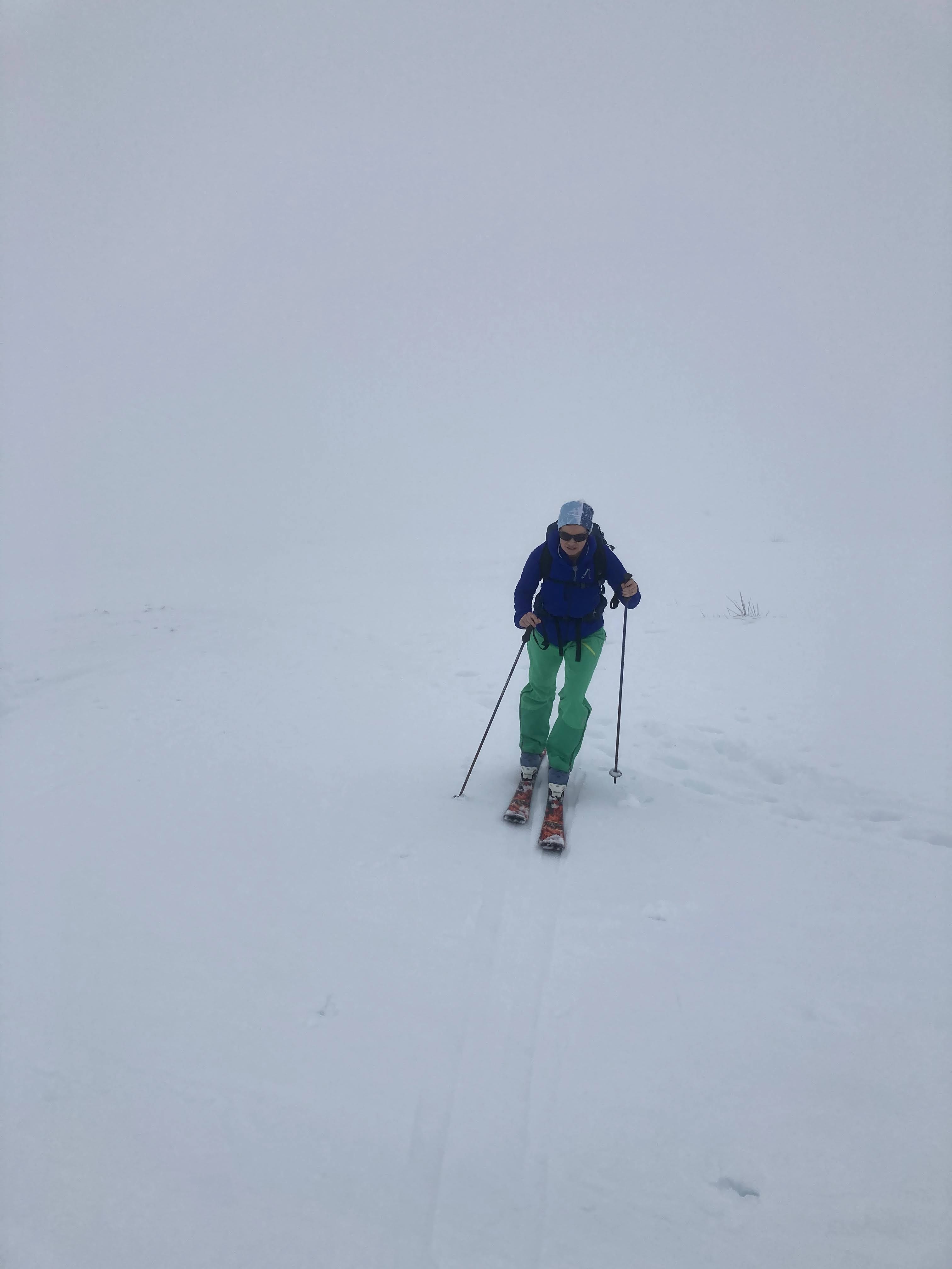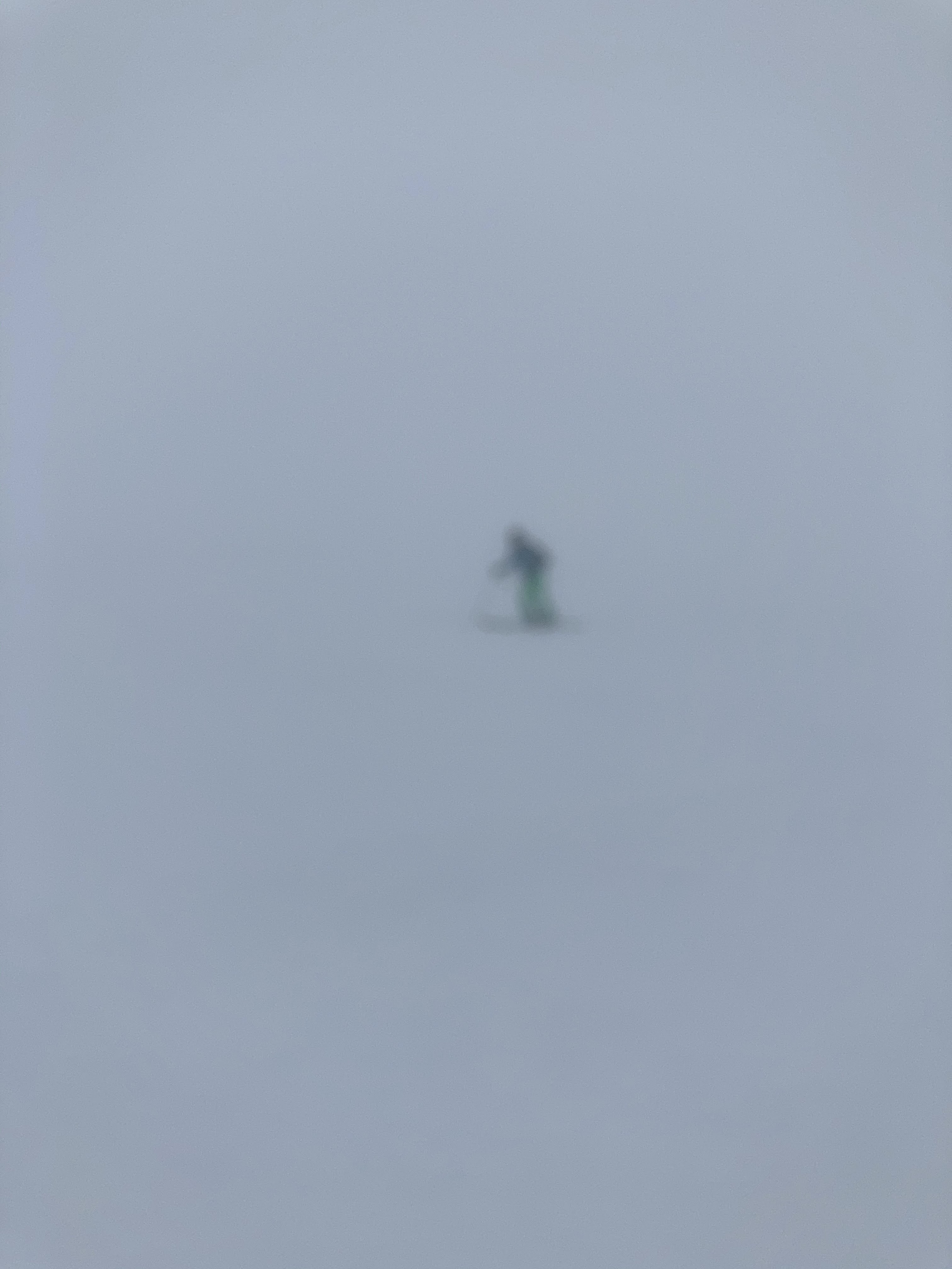 Still, there was plenty of wide-open space to ski around in, so we continued up towards the summit in the mist.